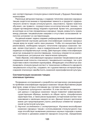 Казахский народный танец – важная часть ценнейшего этнокультурного достояния Республики Казахстан. В этом контексте он требует комплексной оценки состояния, систематизации и углубленного научного осмысления в целях сохранения, обеспечения перспективного развития и использования в образовательном процессе университетов.