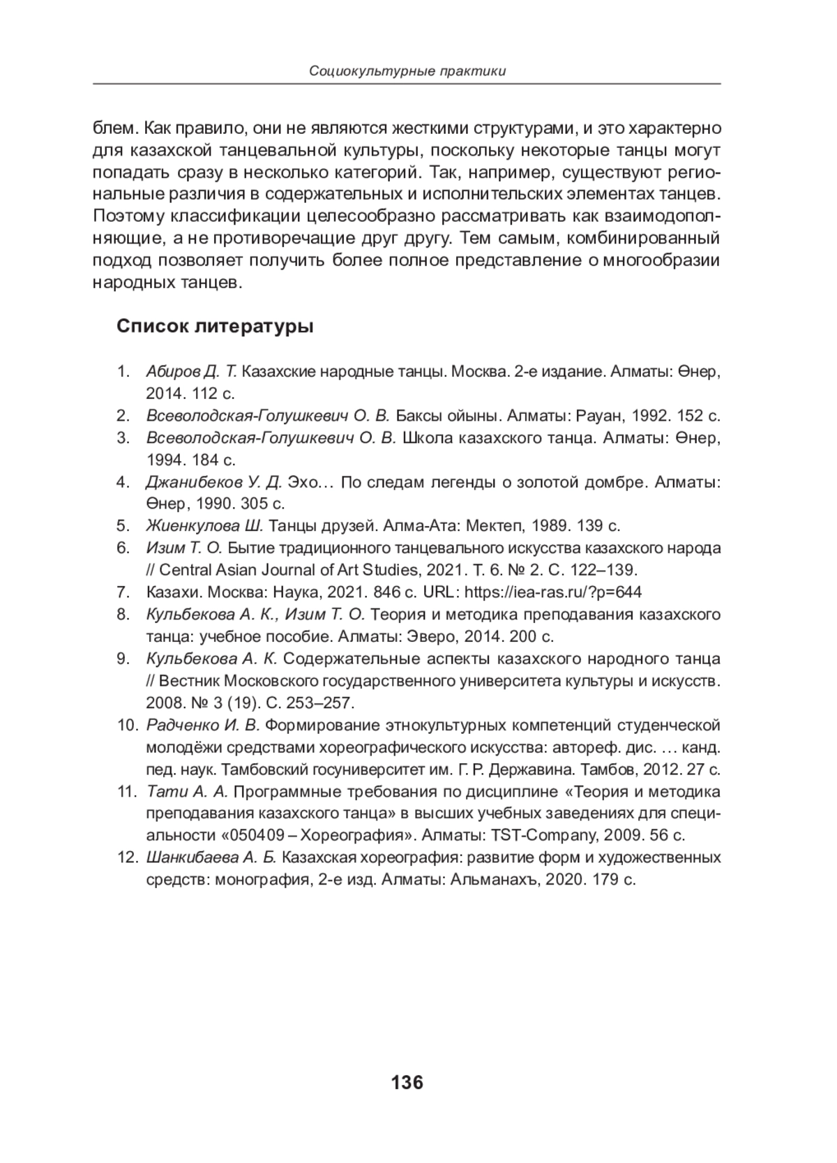 12. Шанкибаева А. Б. Казахская хореография: развитие форм и художественных средств: монография, 2е изд. Алматы: Альманахъ, 2020. 179 с.
