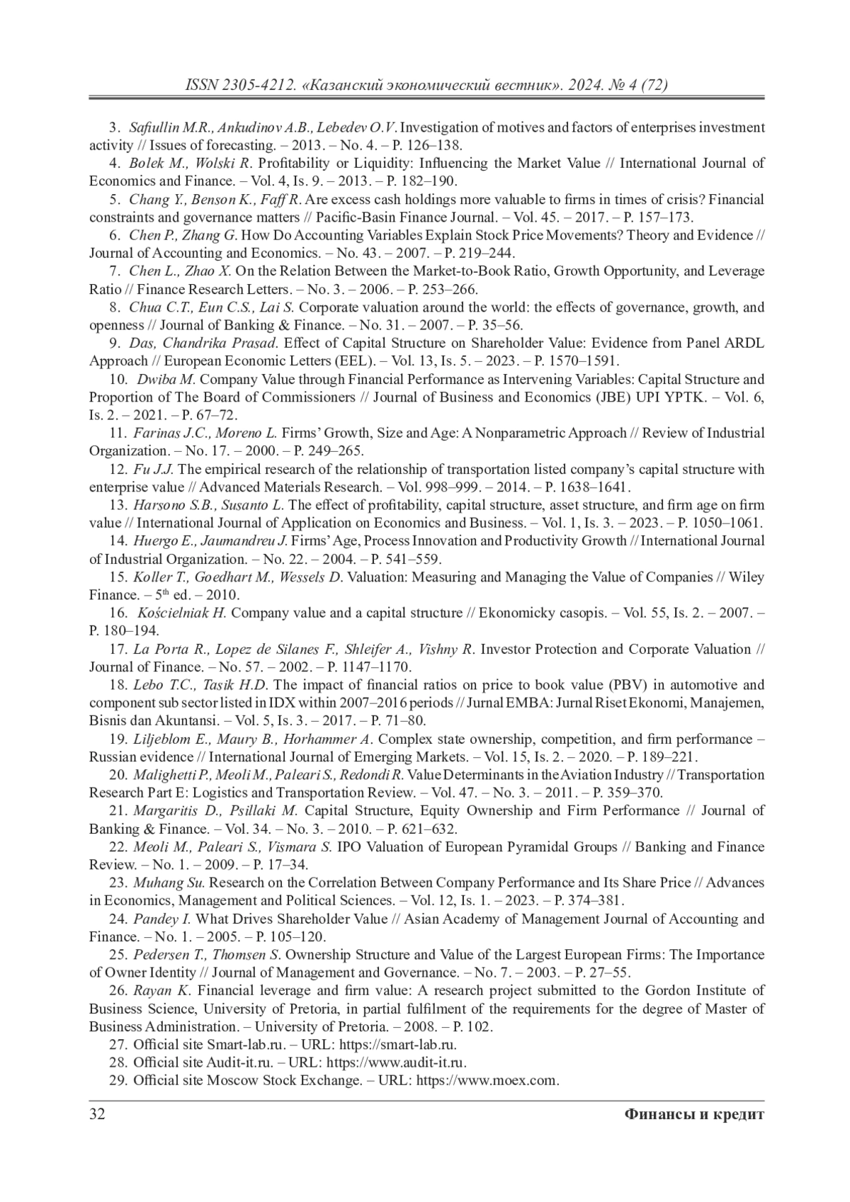 16. Kościelniak H. Company value and a capital structure // Ekonomicky casopis. - Vol. 55, Is. 2. - 2007. - P. 180-194.