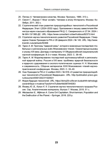 24. Тарко А. М. Прогнозы “ядерной зимы”: история и возможные последствия глобальных и региональных войн /Моисеевские чтения. Гуманитарные вызовы и угрозы XXI века. Доклады и материалы VI Общероссийской (национальной) научной конференции. В 2-х томах. Москва, 2023. С. 39-45. EDN: DAIVFQ