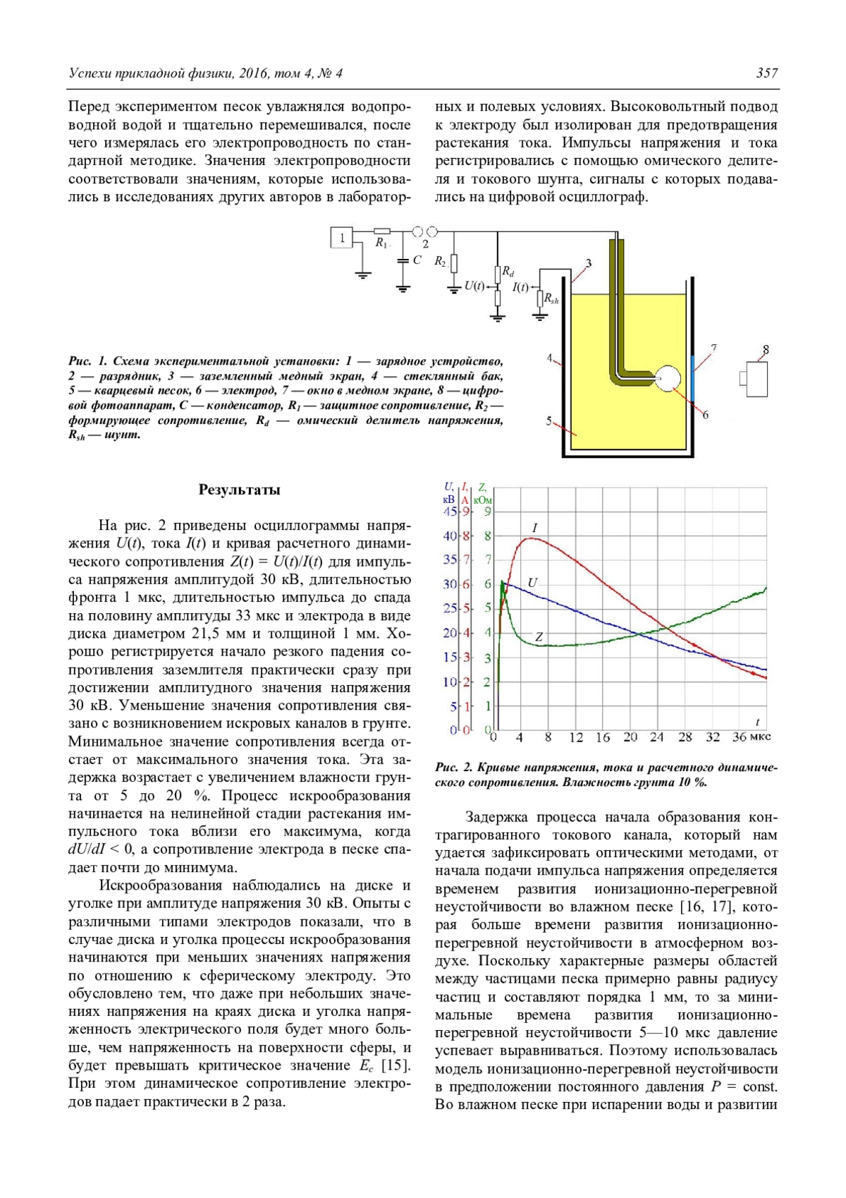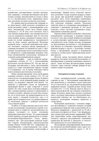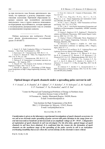 Ивонин В. В., Данилин А. Н., Ефимов Б. В., Колобов В. В., Селиванов В. Н., Василяк Л. М., Ветчинин С. П., Печеркин В. Я., Сон Э. Е. Оптические изображения искровых каналов при растекании импульсных токов в грунте 355