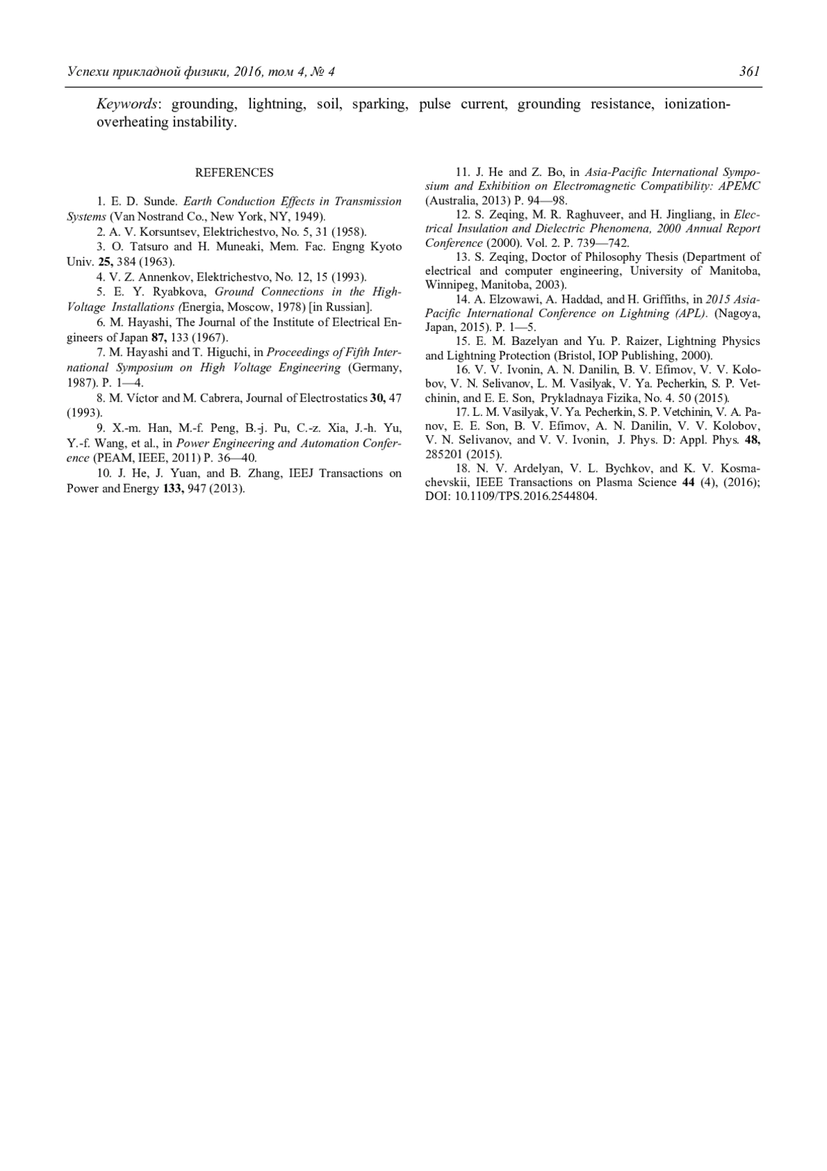 16. V. V. Ivonin, A. N. Danilin, B. V. Efimov, V. V. Kolobov, V. N. Selivanov, L. M. Vasilyak, V. Ya. Pecherkin, S. P. Vetchinin, and E. E. Son, Prykladnaya Fizika, No. 4. 50 (2015).