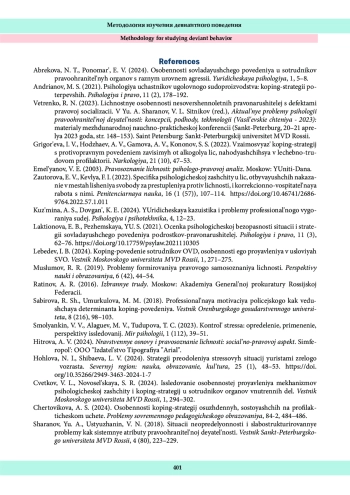 2. Андрианов, М. С. (2021). Психология участников уголовного судопроизводства: копинг-стратегии потерпевших. Психология и право, 11 (2), 178-192.