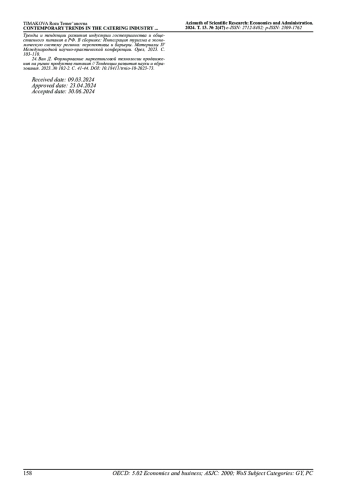 3. Шумилова А.Д., Николаева Т.А., Головачева О.В. Современные тенденции в индустрии общественного питания // StudNet. 2020. Т. 3, № 12. С. 591-607. EDN: OHPKTX