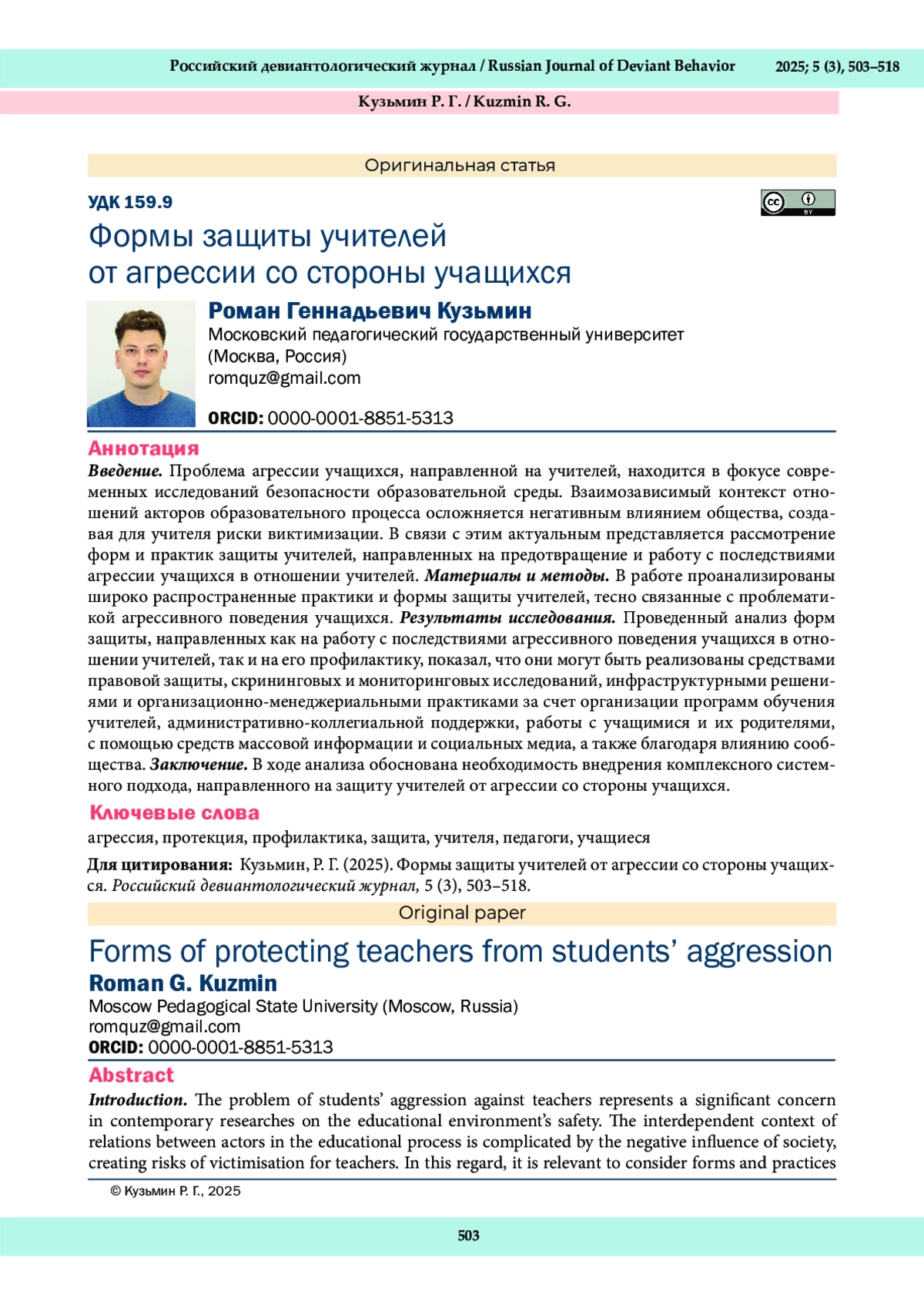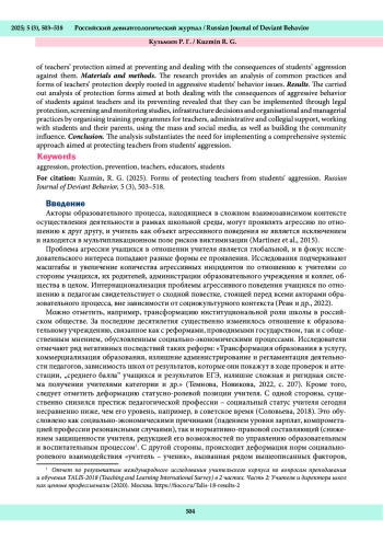 4. Реан, А. А., Коновалов, И. А., Кузьмин, Р. Г. (2025). Последствия для подростков - жертв агрессии: представления учителей с разным уровнем агрессивности. Национальный психологический журнал, 20 (4), 210-222. DOI: 10.11621/npj.2025.0416