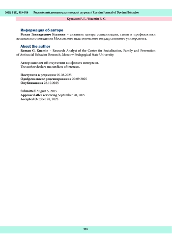 Перед вами очередной номер «Российского девиантологического журнала».