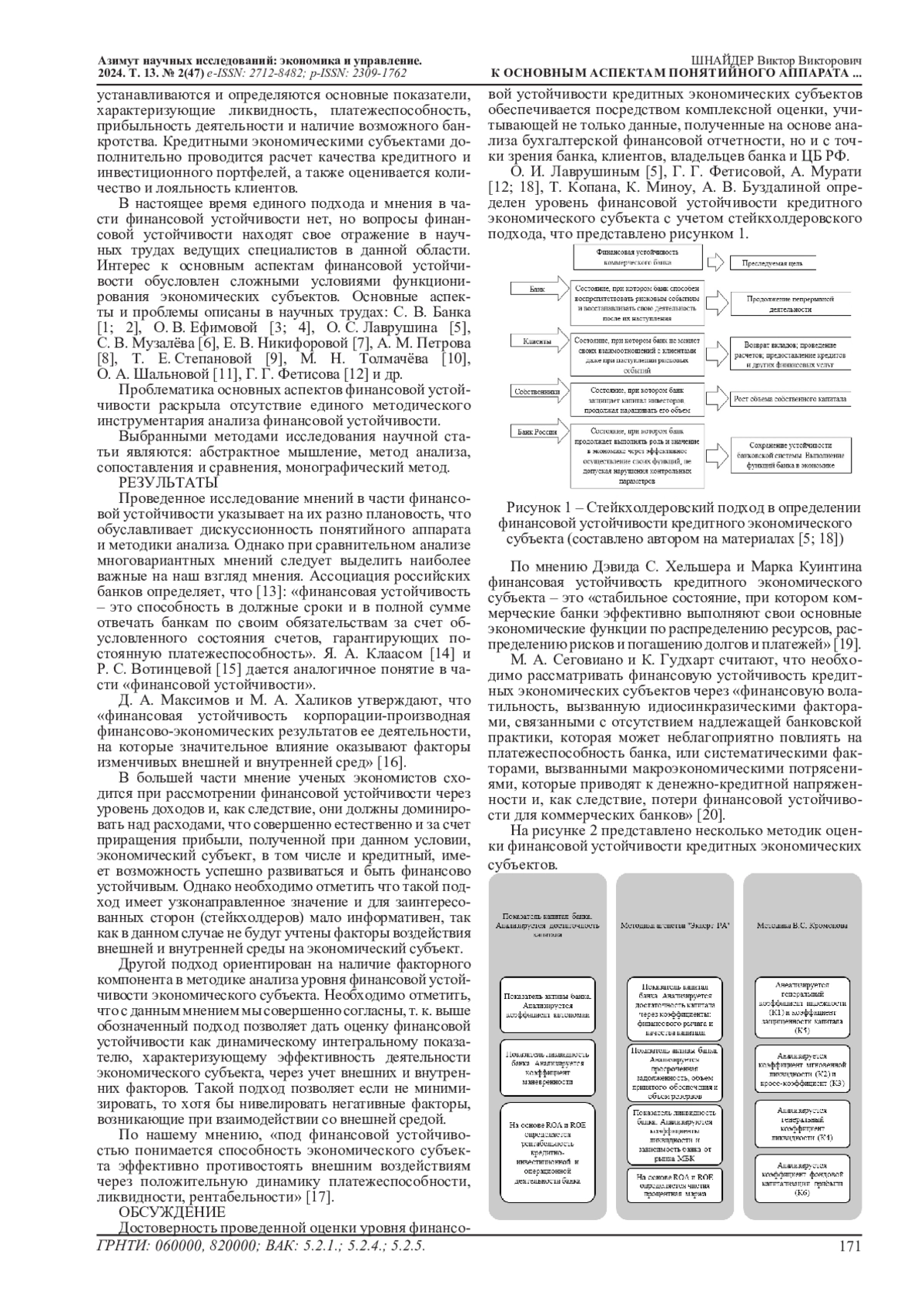 Актуальность научной статьи предопределена тем, что современные турбулентные и нестабильные условия экономических отношений между участниками на макро и микроуровне оказывают существенное влияние на экономические субъекты, в том числе и на кредитные. Сложность ведения финансово-хозяйственной деятельности кредитных экономических субъектов обусловлена чередой кризисных ситуаций, колоссальным давлением со стороны неблагоприятных внешних условий и выросшей конкуренцией в кредитном секторе экономики. В этой связи кредитные экономические субъекты должны обладать высокой способностью в части финансовой устойчивости. Кроме того, и не менее важно, кредитные экономические субъекты создают условия для экономического развития субъектам хозяйствования в различных отраслях экономики и тем самым участвуют в повышении экономического развития страны в целом. Кредитные экономические субъекты осуществляют оборот денежных средств между разноплановыми участниками рынка, что подразумевает необходимость осуществления жесткого контроля за движением денежной массы, напрямую влияющей на уровень устойчивого развития в том числе и финансовую устойчивость любого экономического субъекта. В кредитной сфере только экономический субъект с высоким уровнем финансовой устойчивости может профессионально осуществлять задачи по выполнению финансовых услуг как бизнесу, так и населению. Мировой опыт определяет важность кредитных экономических субъектов в формировании экономики любой страны и обеспечении ее постоянного роста, что положительно отражается на уровне функционирования реального сектора экономики и жизни населения. Гипотеза исследования обусловлена теоретико-практическим обоснованием важности построения методики анализа уровня финансовой устойчивости, позволяющей своевременно отреагировать на негативное изменение уровня финансовой устойчивости, выявить проблемы ее снижения и минимизировать возникающие риски в кредитной сфере. Цель научного исследования обусловлена возможность общения и систематизацией основных инструментов и механизмов при проведении анализа финансовой устойчивости.