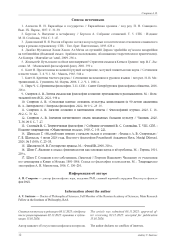 12. Смирнов А. В. Значение когнитивного опыта незападных больших культур // Человек. 2025. Т. 36. № 5. С. 7-27.
