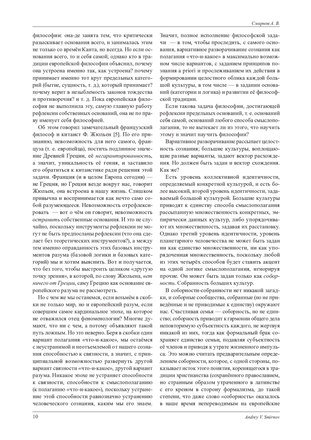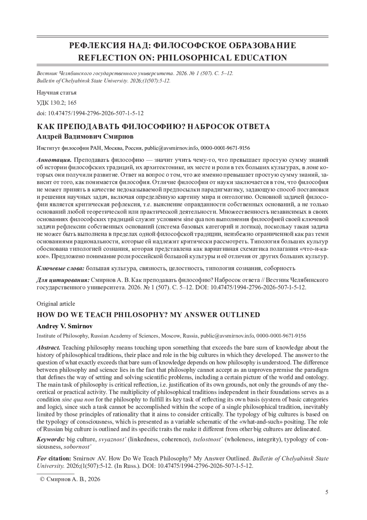 10. Смирнов А. В. «Стволовая клетка» сознания, культуры, цивилизации (к 90-летию академика В. А. Лекторского) // Вопросы философии. 2022. № 9. С. 25-35.