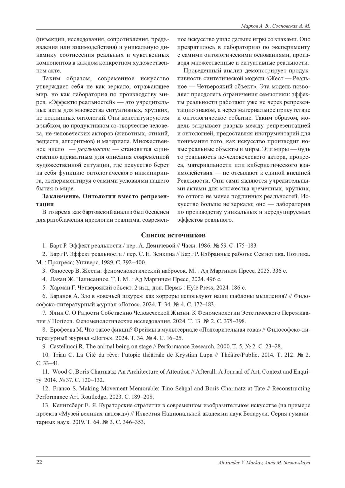 1. Барт Р. Эффект реальности / пер. А. Демичевой // Часы. 1986. № 59. С. 175-183.
