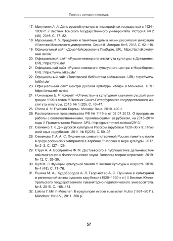 17. Микуленок А. А. День русской культуры в лимитрофных государствах в 1924 1939 гг. // Вестник Томского государственного университета. История. № 2 (40). 2016. С. 77-82. EDN: VVBIFX