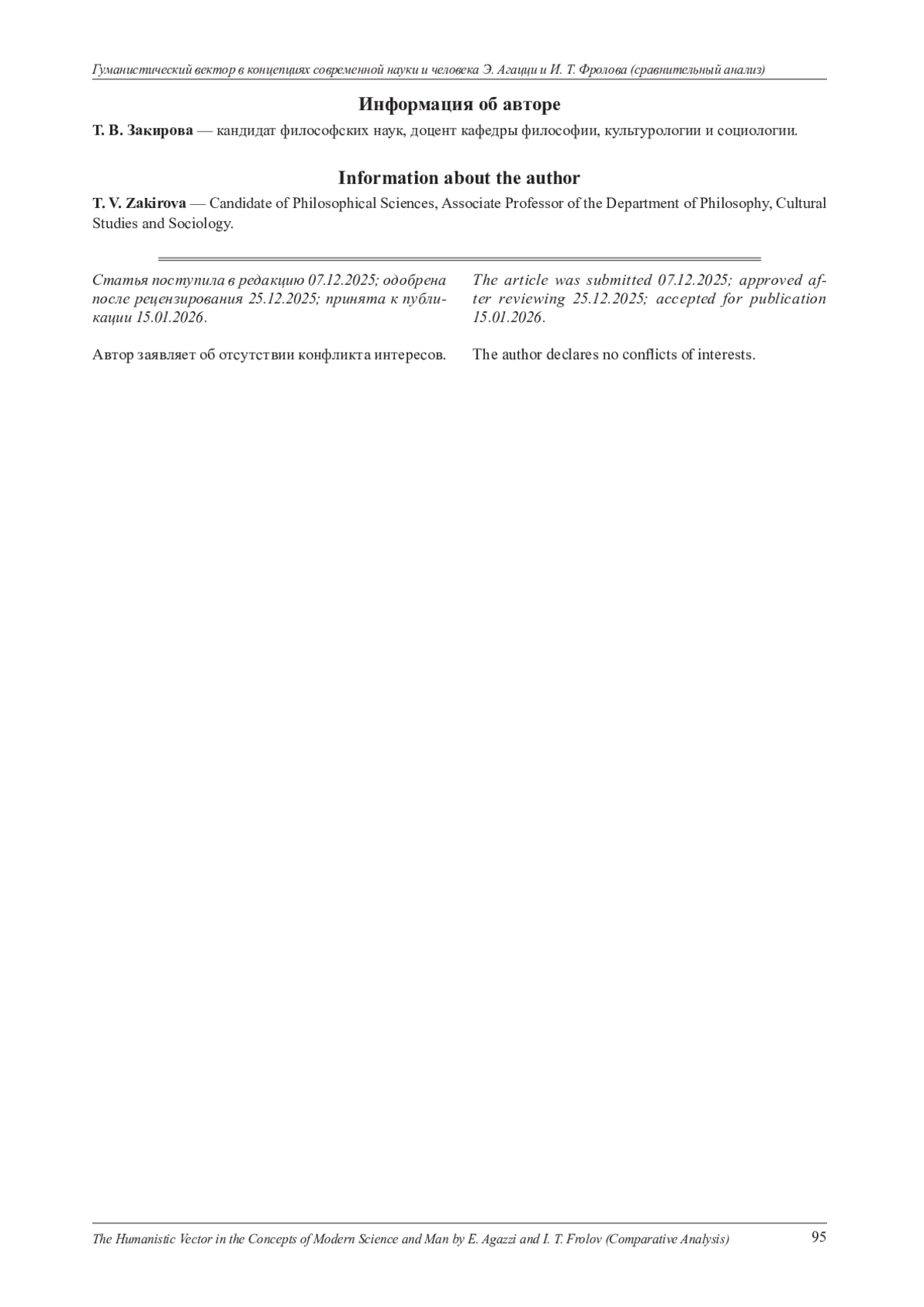 34. Фролова М. И. Проблемы этики технонауки в трудах Э. Агацци // Человек. 2016. № 5. С. 55-68.