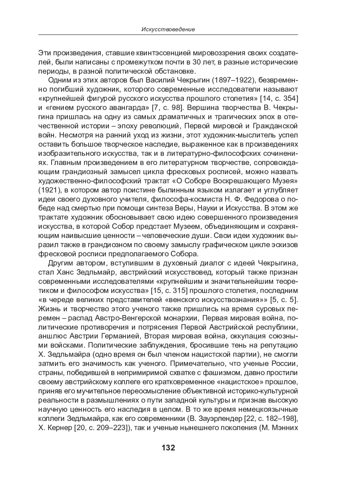 14. Пушкарева Т. И. Идея соборности в системе эстетических воззрении Василия Чекрыгина и философии искусства Ханса Зедльмайра // Вестник Русской христианской гуманитарной академии. Санкт Петербург: Изд-во РХГА, 2016. Том 17. Выпуск 2. С. 354-363