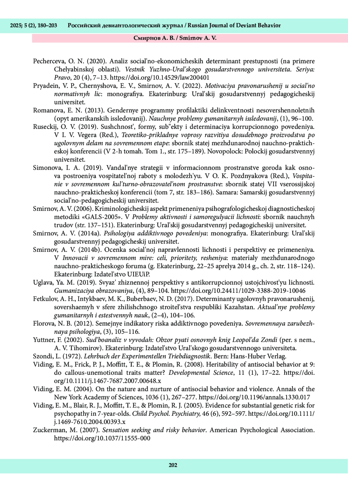 27. Смирнов, А. В. (2014a). Психология аддиктивного поведения: монография. Екатеринбург: Уральский государственный педагогический университет.