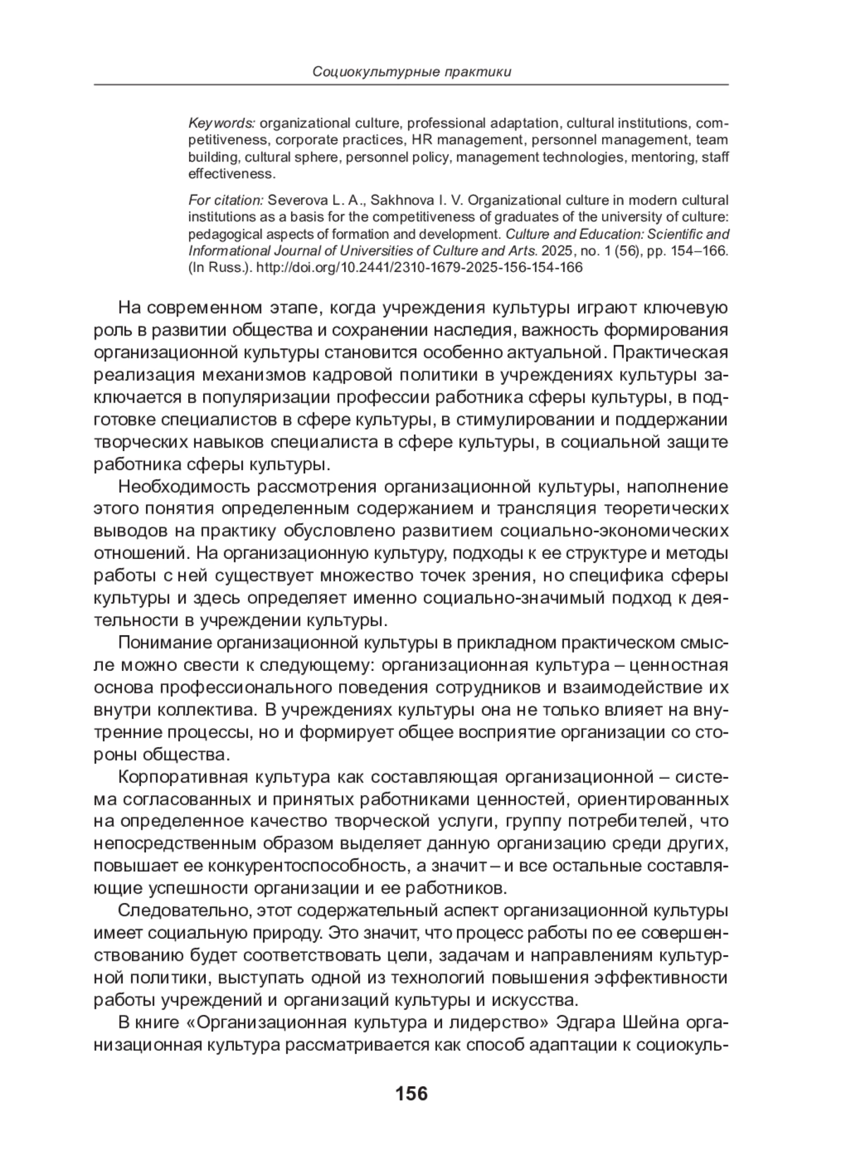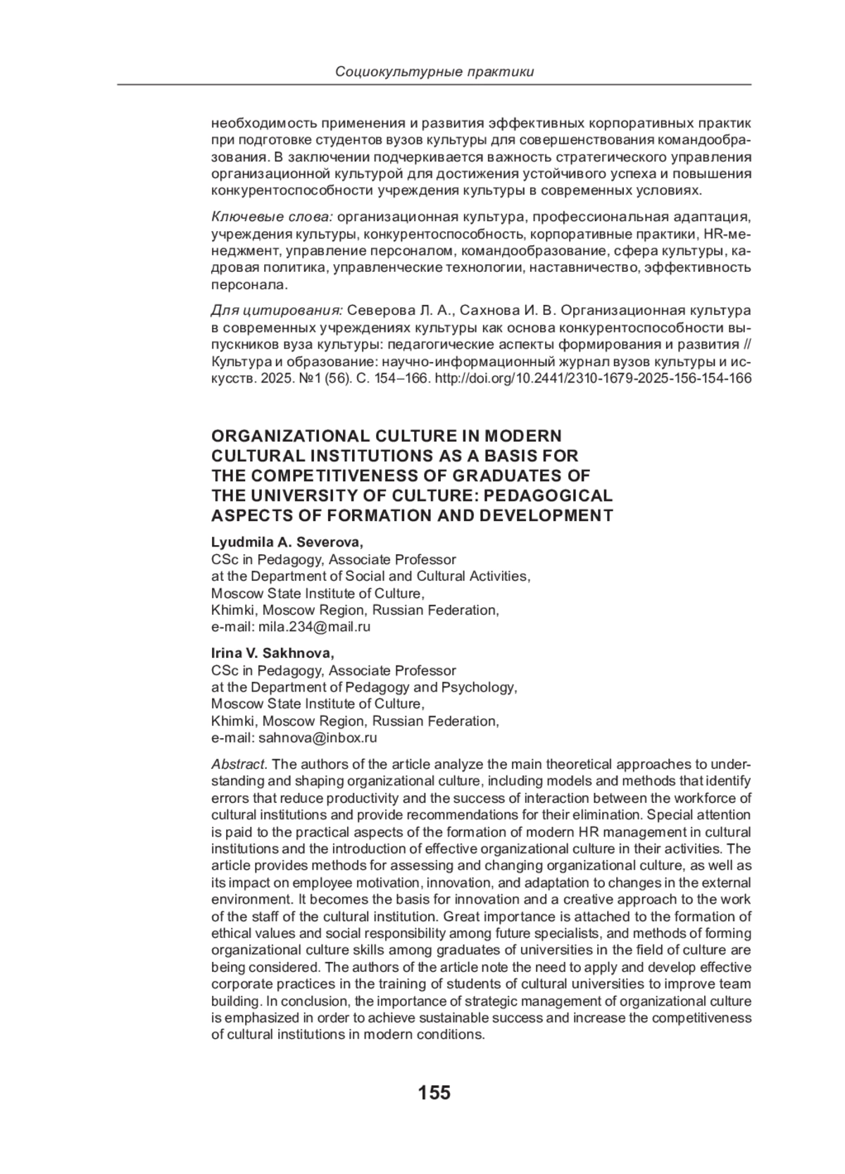 Авторы статьи анализируют основные теоретические подходы к пониманию, формированию организационной культуры, включая модели и методы, позволяющие выявить ошибки, снижающие производительность и успешность взаимодействия трудового коллектива учреждений культуры и дают рекомендации по их устранению. Особое внимание уделяется практическим аспектам формирования современного HR-менеджмента в учреждениях культуры и внедрения эффективной организационной культуры в их деятельность. В статье приводятся методы оценки и изменения организационной культуры, а также ее влияние на мотивацию сотрудников, инновации и адаптацию к изменениям внешней среды. Она становится основой для инноваций и творческого подхода к работе сотрудников учреждения культуры. Большое значение уделяется формированию этических ценностей и социальной ответственности у будущих специалистов, рассматриваются методы формирования навыков организационной культуры у выпускников вузов в сфере культуры. Авторы статьи отмечают необходимость применения и развития эффективных корпоративных практик при подготовке студентов вузов культуры для совершенствования командообразования.