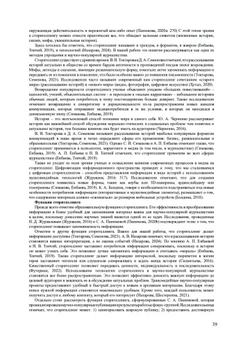 2. Енбаева А. П., Топчий И. В. Сторителлинг - тренд современной журналистики // Медиасреда. 2018. № 2. С. 27-31.