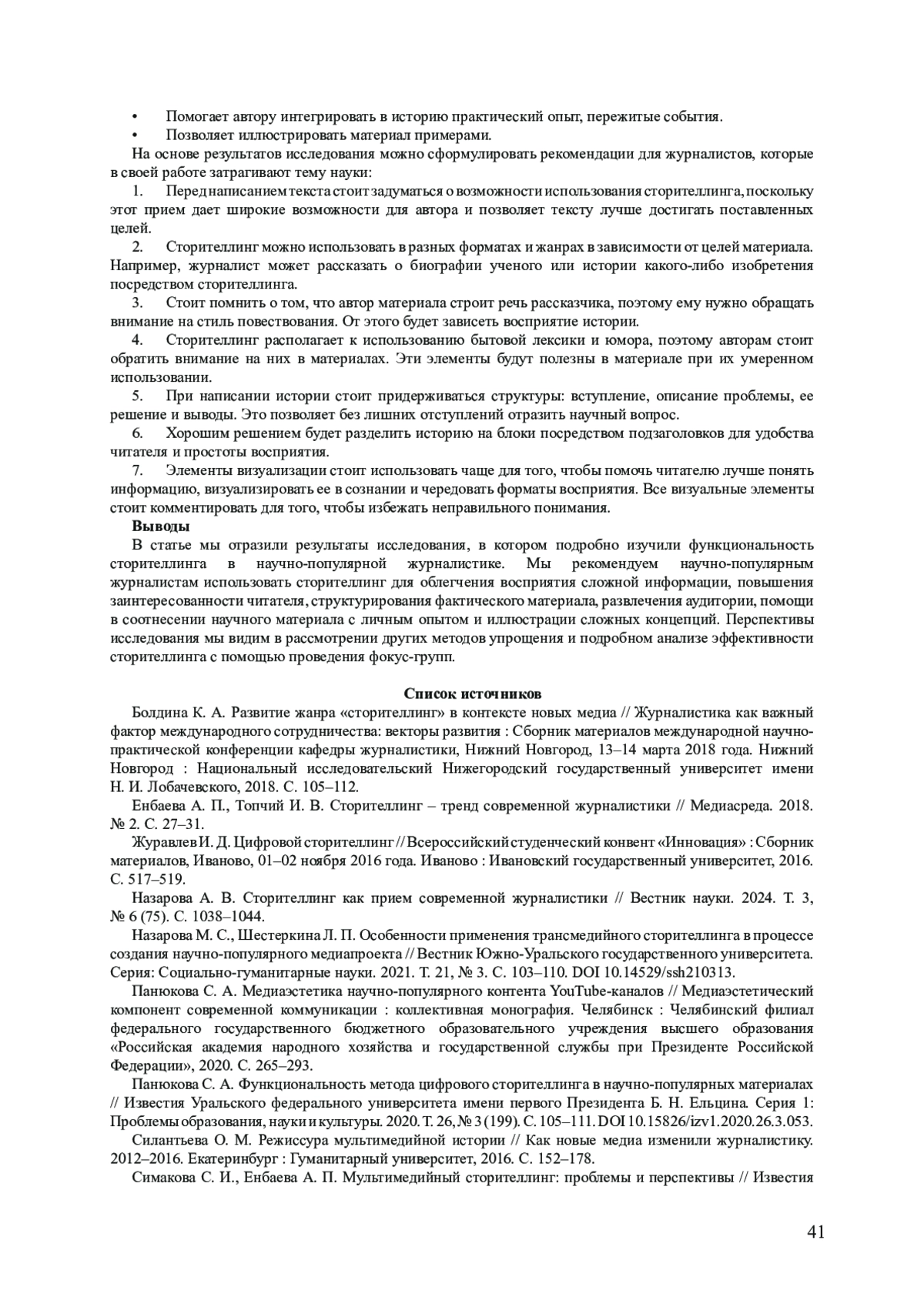 13. Ульянова Ю. С., Зелянская Н. Л. Терминологический анализ понятия «сторителлинг» // Филология в XXI веке. 2023. № 1 (11). С. 90-99.