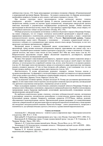 6. Иванова Е. Н. Аспекты изучения языковой личности. Екатеринбург: Уральский государственный педагогический университет, 2021. 115 с.