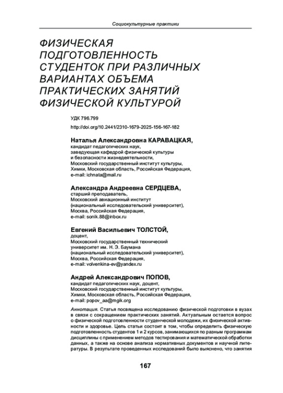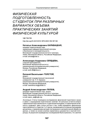 8. Оценка физической подготовленности студентов 1 3 курсов энергетического института на основе нормативов ГТО // Культура физическая и здоровье. 2024. № 3(91). С. 134-139. EDN: CEAENE
