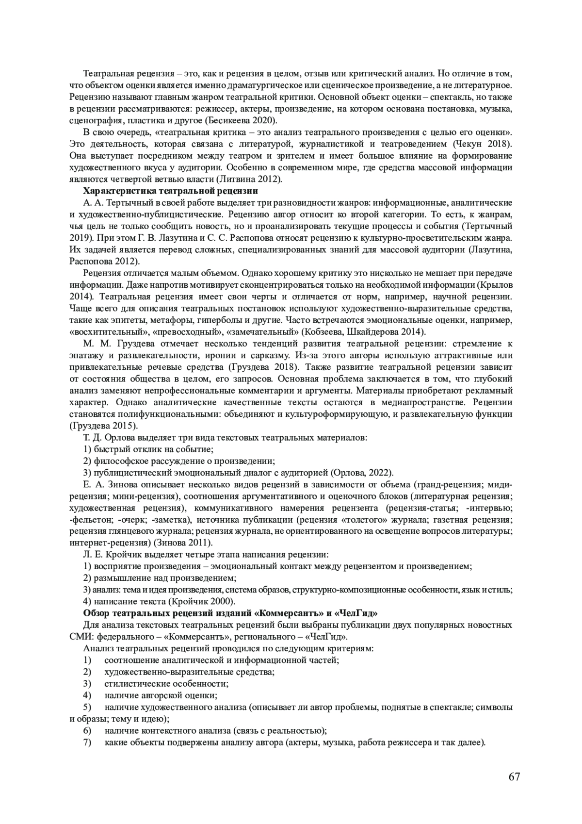 14. Орлова Т. Д. Теоретико-методологические проблемы критики театральных произведений в СМИ // Вопросы журналистики, педагогики, языкознания. 2022. Т. 41. № 1. С. 22-31.