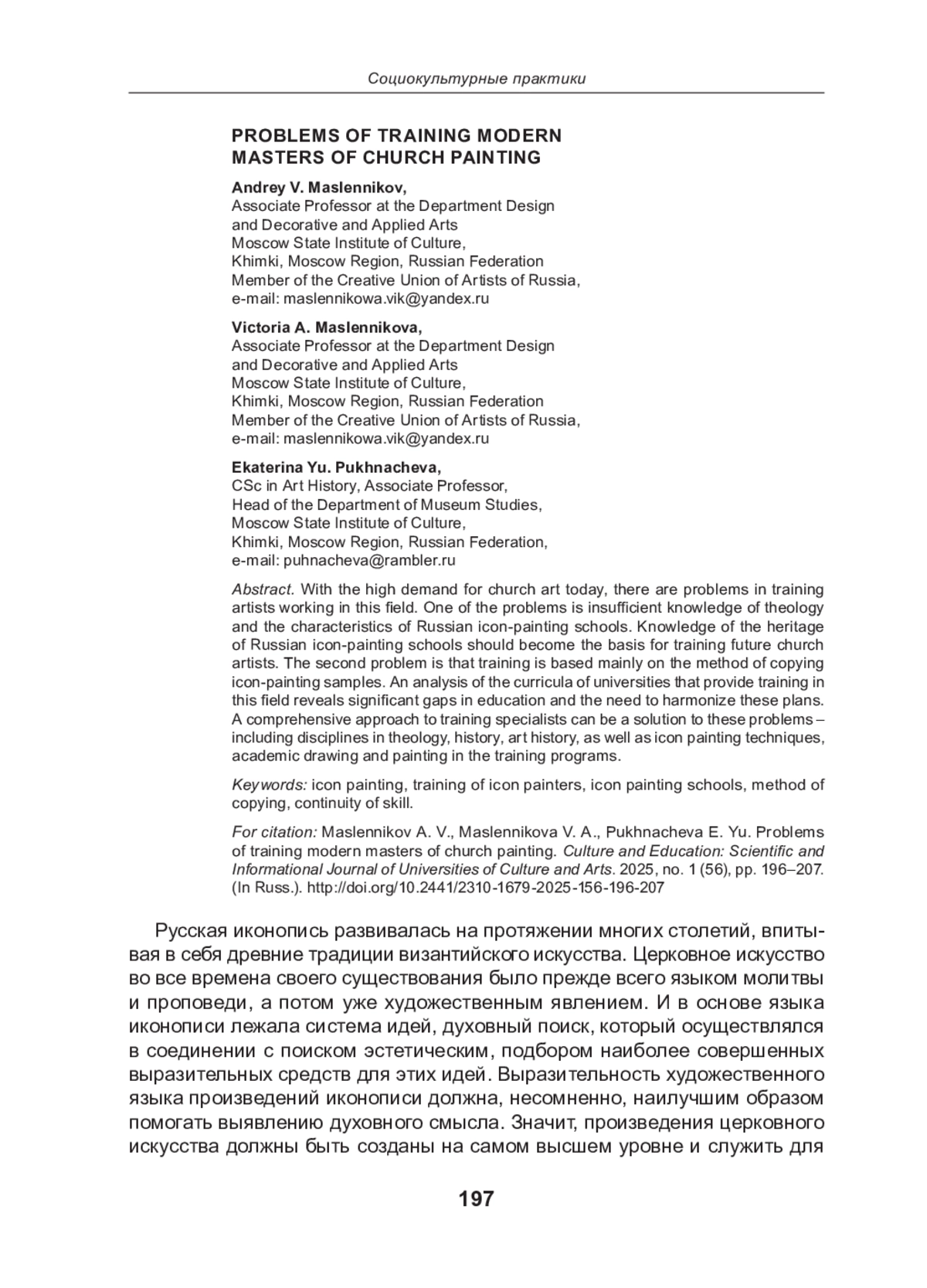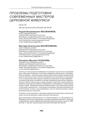 При высокой востребованности церковного искусства на сегодняшний день, существуют проблемы в подготовке художников, работающих в этой сфере. Одна из проблем недостаточные знания в области богословия и особенностей русских иконописных школ. Знание наследия русских иконописных школ должно стать основой подготовки будущих церковных художников. Вторая проблема построение обучения в основном на методе копирования иконописных образцов. Анализ учебных планов вузов, осуществляющих подготовку в данной области, выявляет существенные пробелы в образовании и необходимость гармонизации данных планов. Решением указанных проблем может стать комплексный подход к подготовке специалистов включение в программы обучения дисциплин как по богословию, истории, искусствоведению, так и по технике иконописи, академическому рисунку и живописи.