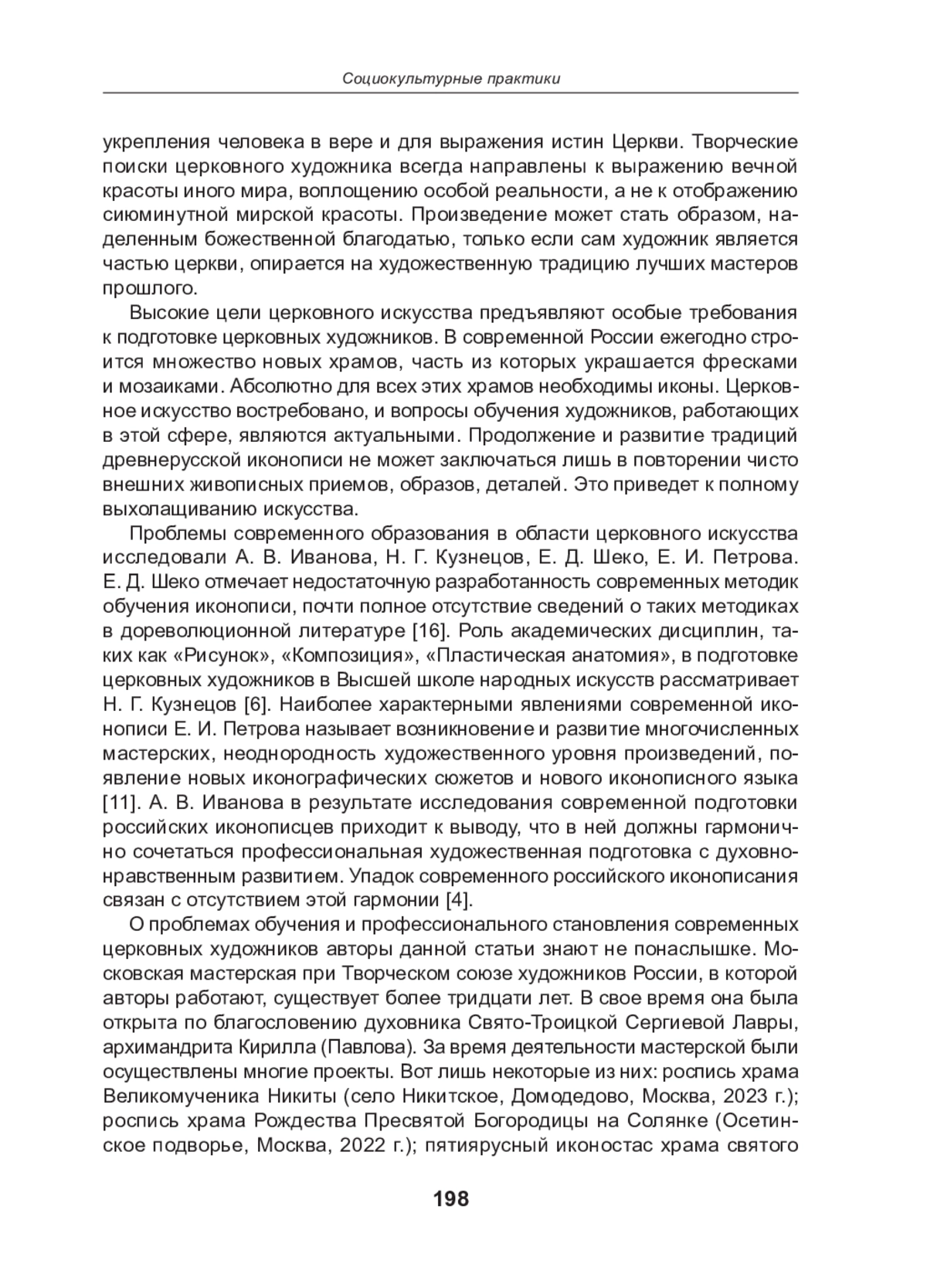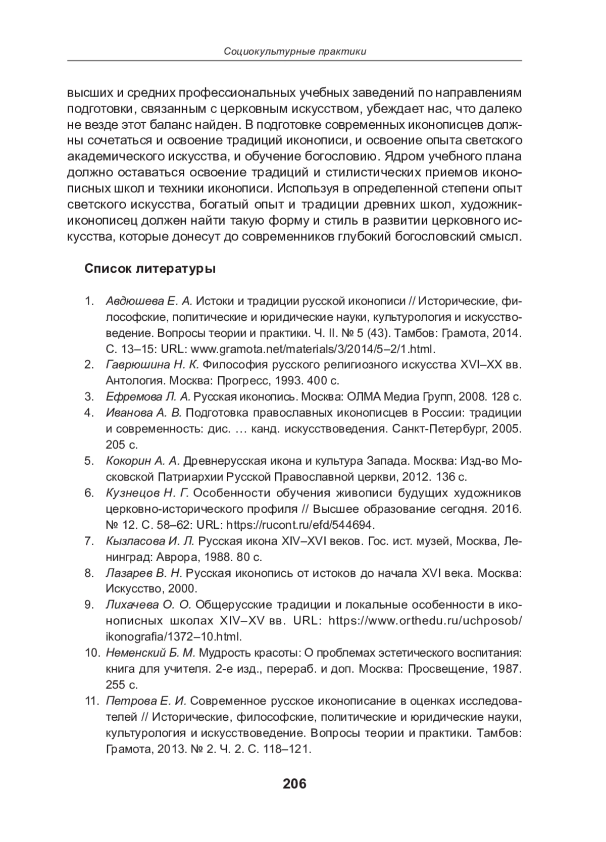 11. Петрова Е. И. Современное русское иконописание в оценках исследователей // Исторические, философские, политические и юридические науки, культурология и искусствоведение. Вопросы теории и практики. Тамбов: Грамота, 2013. № 2. Ч. 2. С. 118-121.