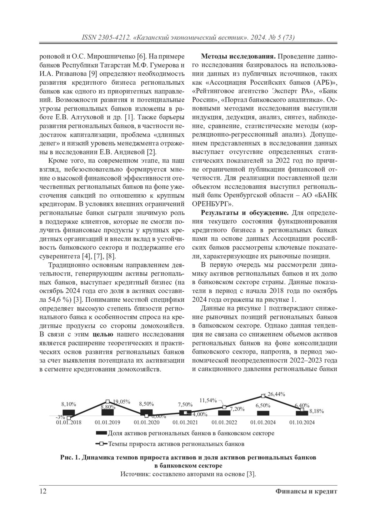 9. Гумерова М.Ф., Ризванова И.А. Кредитные риски российских коммерческих банков: новые подходы к управлению // Финансы: теория и практика. - 2023. - № 27(2). - С. 64-75.
