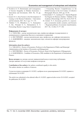 8. Орехов В. Д., Блинникова А. В., Каранашев А. Х., Причина О. С., Щенникова Е. С. Прогнозирование долговременной конкурентоспособности России // Прогнозирование конкурентоспособности России в мировой экономике в XXI веке: коллективная монография. Москва, 2024. С. 10-60. EDN: CEOXNR