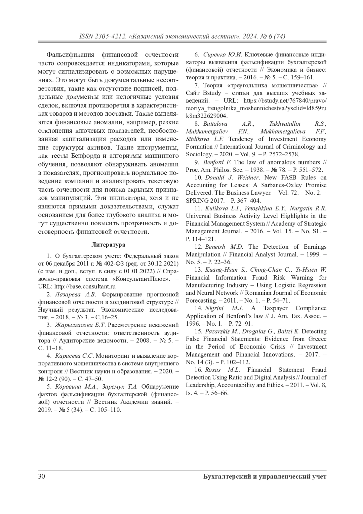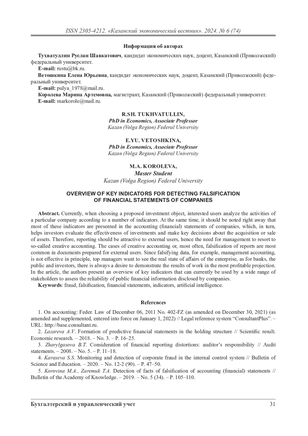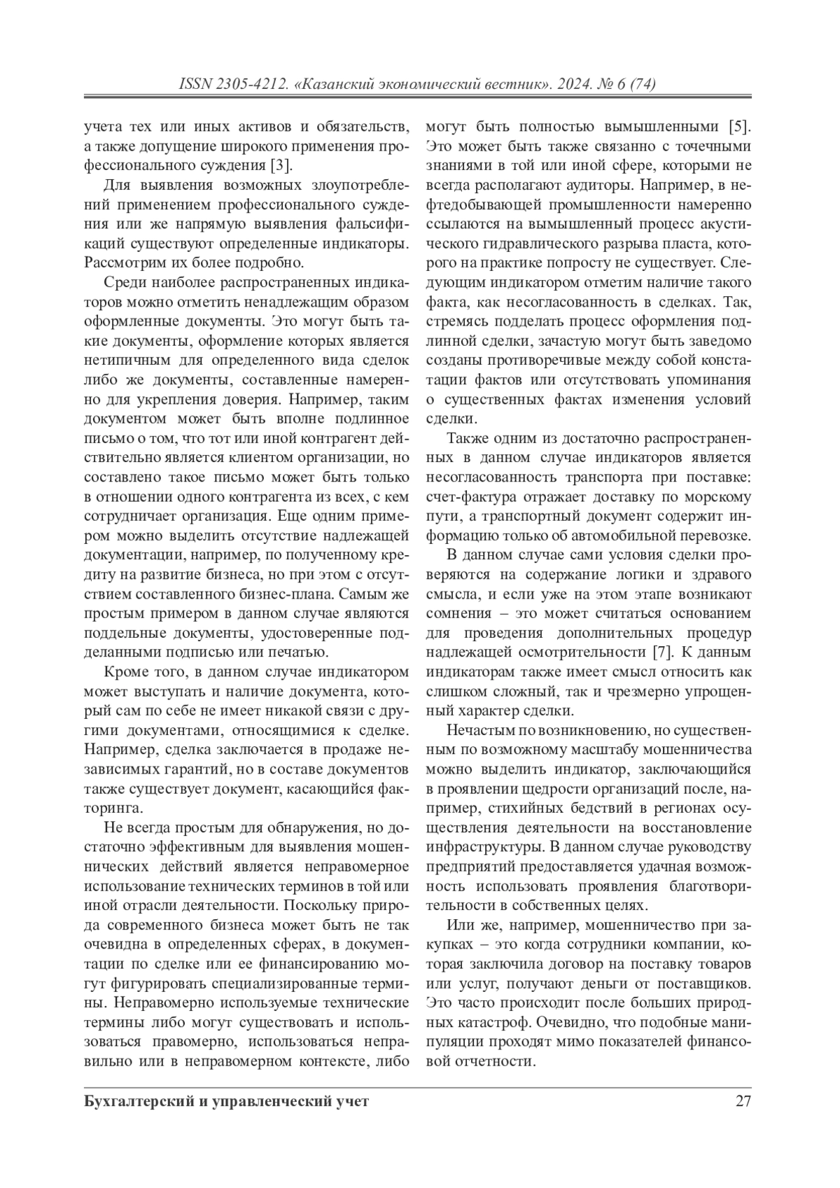 В настоящее время при выборе предполагаемого объекта инвестиций, заинтересованные пользователи анализируют деятельность той или иной компании по целому ряду показателей. При этом необходимо сразу отметить, что большая часть этих показателей представлены в бухгалтерской (финансовой) отчетности компаний, которая, в свою очередь, помогает инвесторам оценить эффективность вложений и принять ключевые решения о приобретении или продаже активов. Следовательно, для внешних пользователей отчетность должна быть привлекательна, отсюда и возникает необходимость руководства прибегать к так называемому креативному учету. Случаи креативного учета или же чаще всего фальсификации отчетности наиболее распространены именно в документах, подготавливаемых для внешних пользователей. Поскольку подделывать данные, например, управленческого учета – мало эффективно в принципе, топ-менеджеры хотят видеть реальное положение дел предприятия, в то время как в отношении банков, общественности и инвесторов всегда прослеживается стремление продемонстрировать результаты работы в наиболее выгодной проекции. В статье авторы представляют обзор ключевых индикаторов, которые в настоящее время могут использоваться широким кругом заинтересованных лиц для оценки степени достоверности публичной финансовой информации, раскрываемой компаниями.