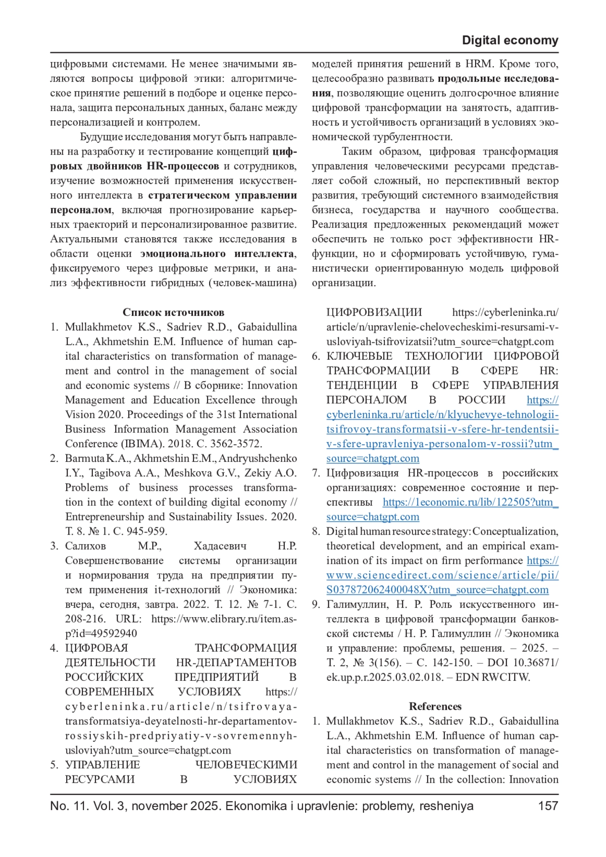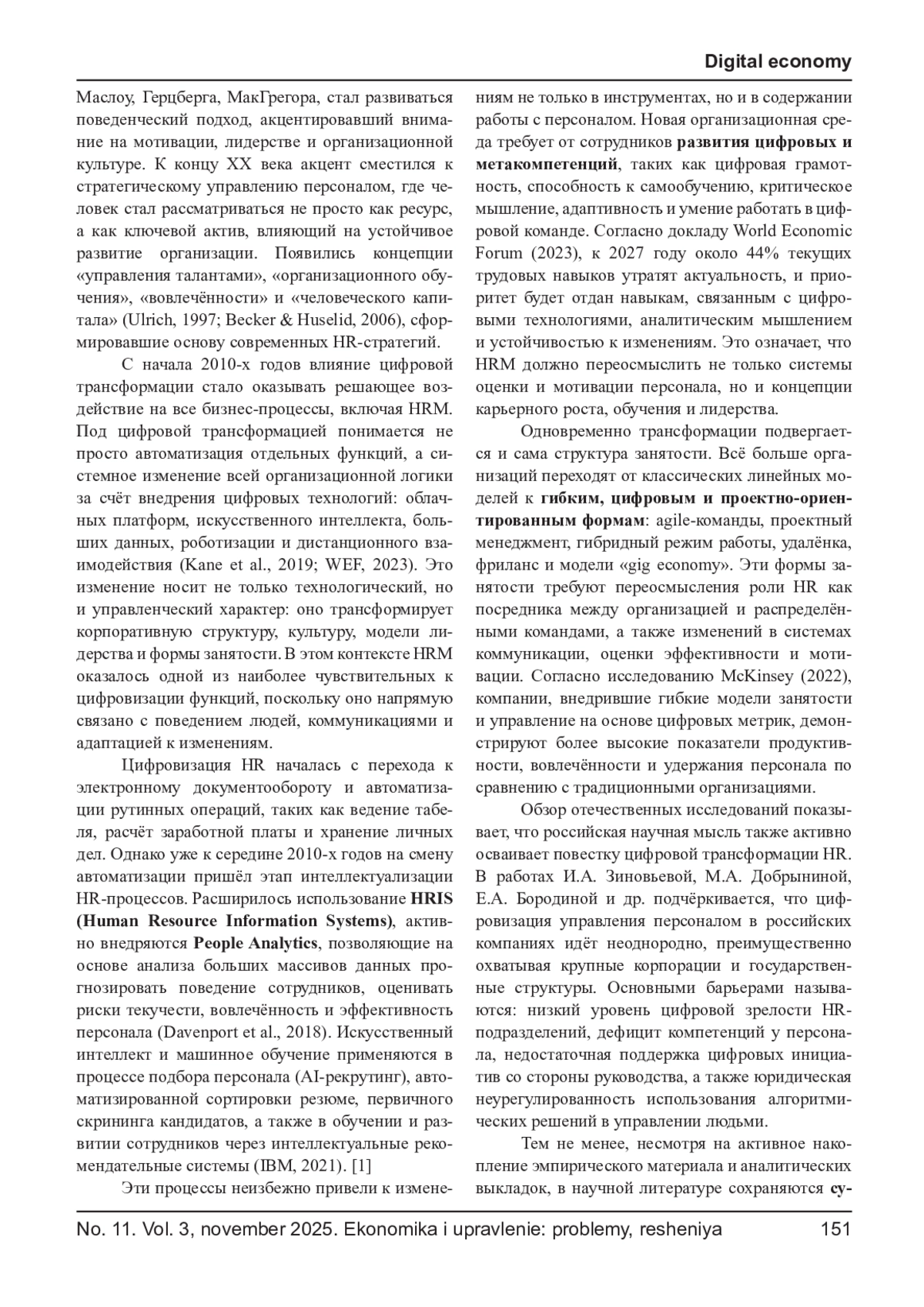 5. УПРАВЛЕНИЕ ЧЕЛОВЕЧЕСКИМИ РЕСУРСАМИ В УСЛОВИЯХ ЦИФРОВИЗАЦИИ https://cyberleninka.ru/article/n/upravlenie-chelovecheskimi-resursami-vusloviyah-tsifrovizatsii?utm_source=chatgpt.com.
