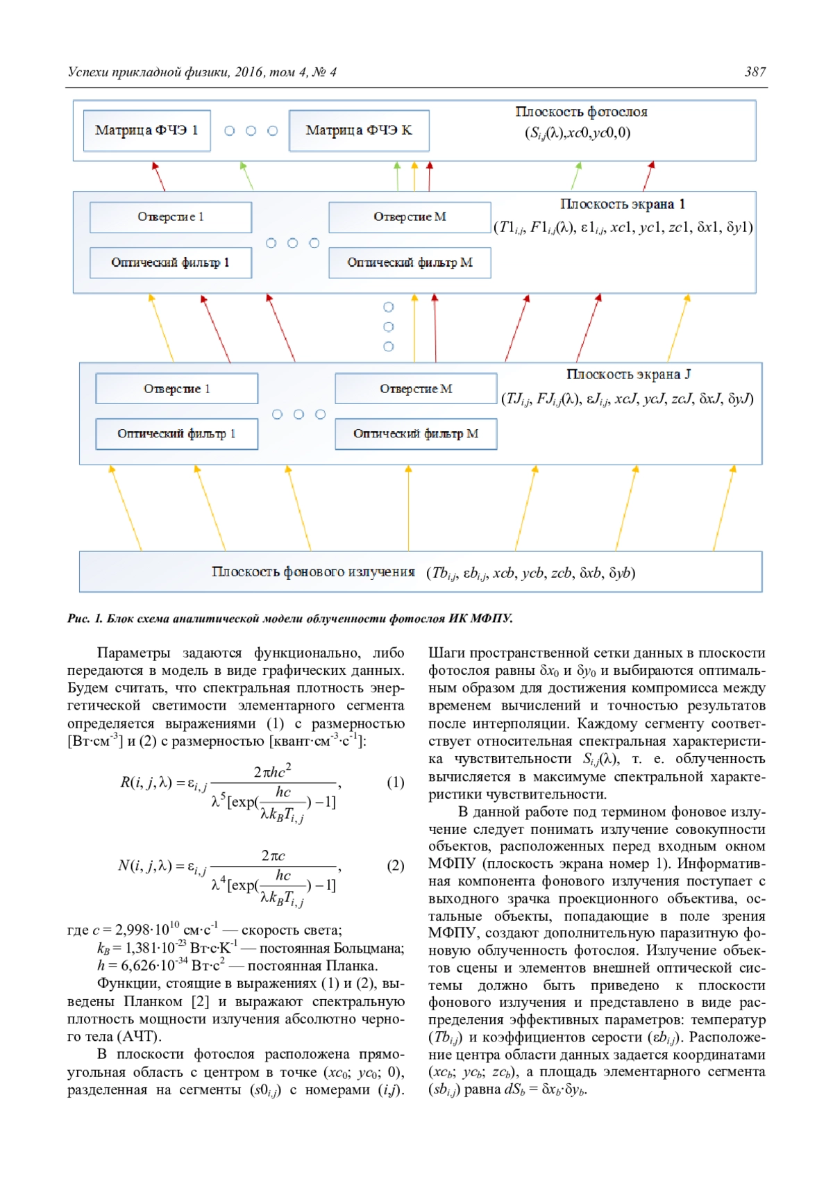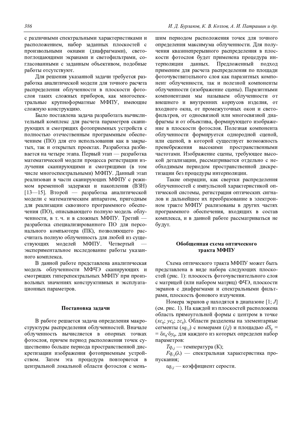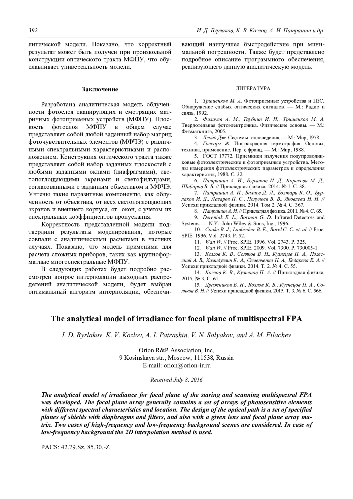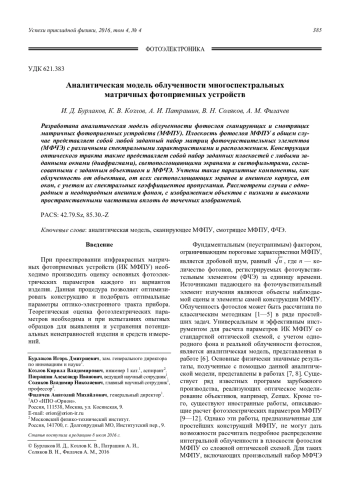 Бурлаков И. Д., Козлов К. В., Патрашин А. И., Соляков В. Н., Филачев А. М. Аналитическая модель облученности многоспектральных матричных фотоприемных устройств 385