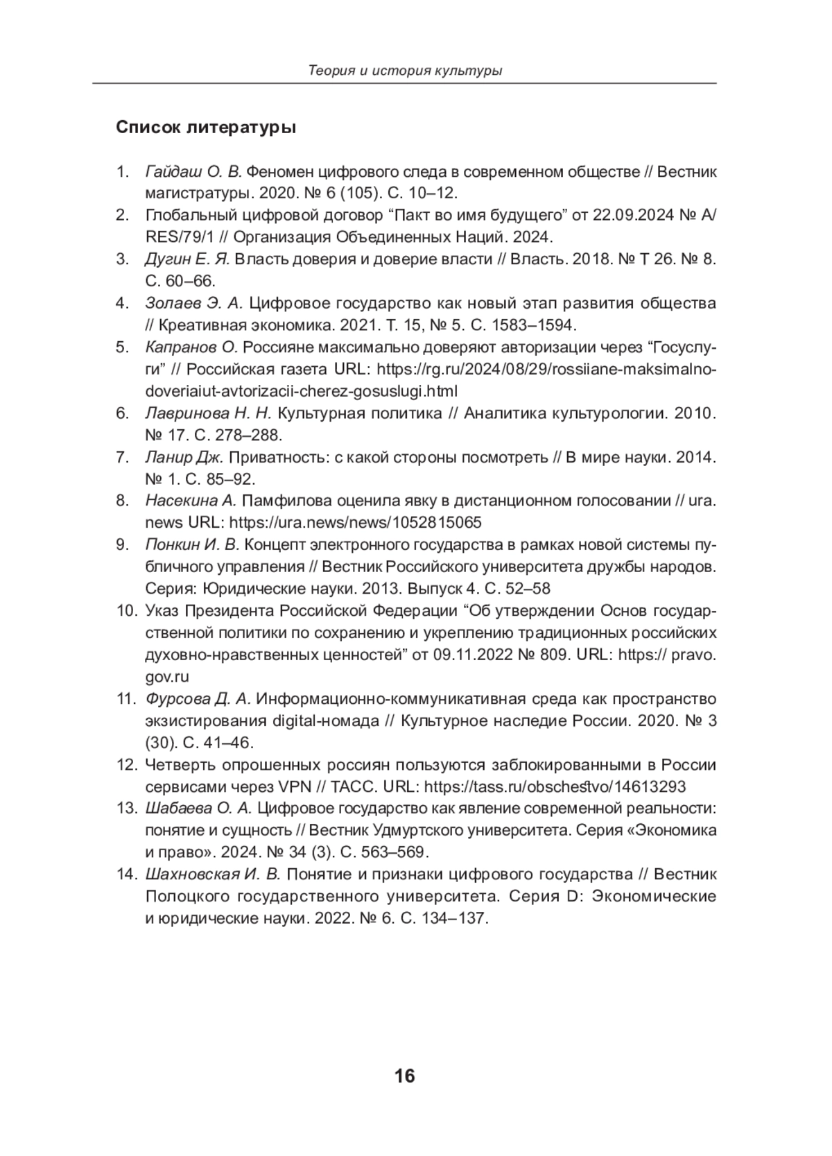 13. Шабаева О. А. Цифровое государство как явление современной реальности: понятие и сущность // Вестник Удмуртского университета.Серия “Экономика и право”. 2024. № 34 (3). С. 563-569.