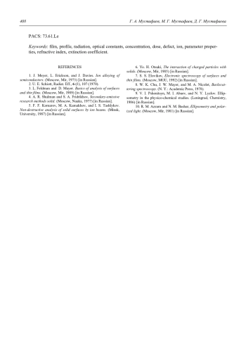 3. L. Feldman and D. Mayer. Basics of analysis of surfaces and thin films. (Moscow, Mir, 1989) [in Russian].