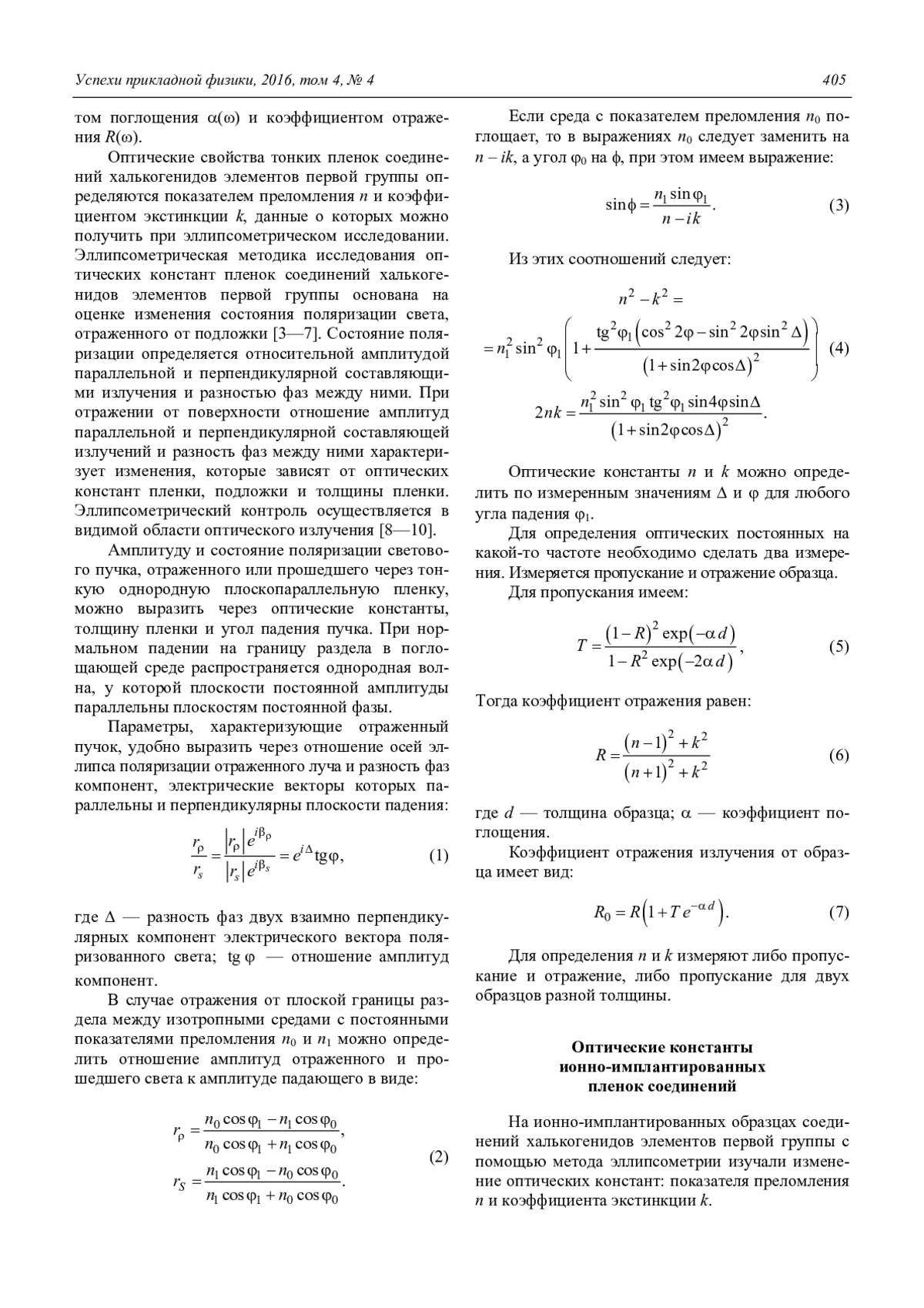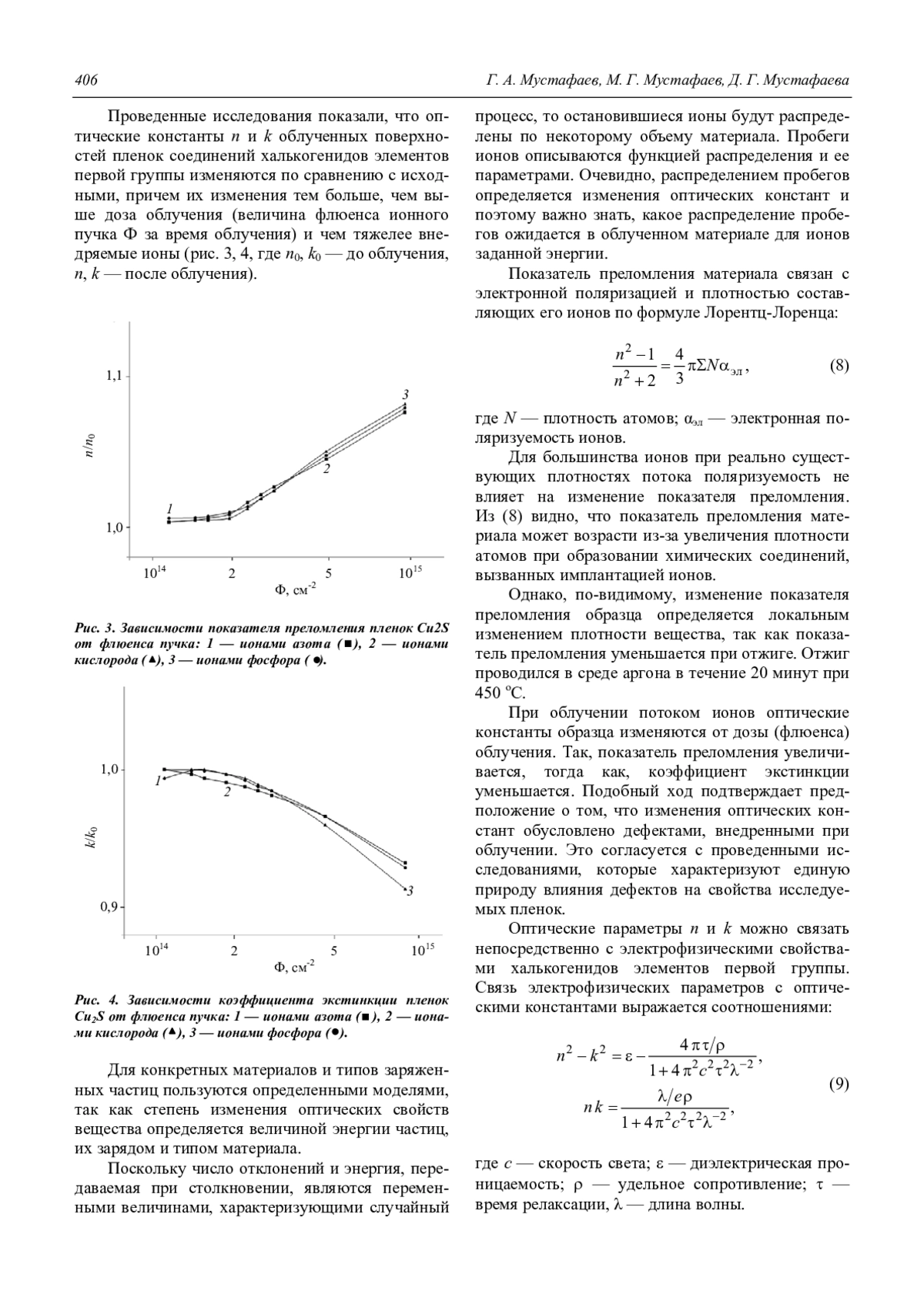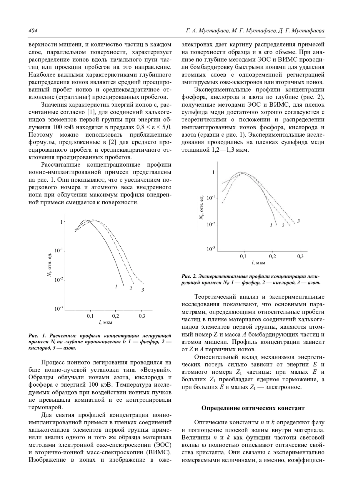 Мустафаев Г. А., Мустафаева Д. Г., Мустафаев М. Г. Профили концентрации и оптические константы ионно-имплантированных пленок соединений халькогенидов элементов первой группы 403