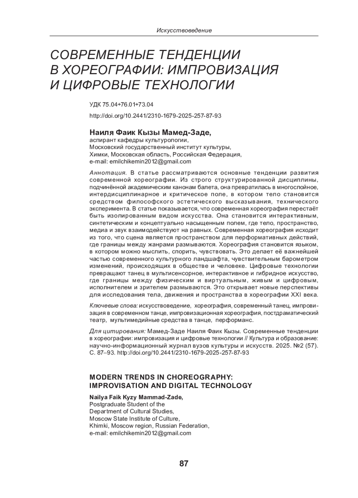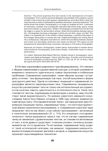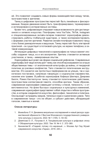 2. Девятова О. Л., Пичуева А. А. Танцевальная культура в цифровую эпоху // Обсерватория культуры. 2022. Том 19. № 4. С.372-380. EDN: GUJLJQ