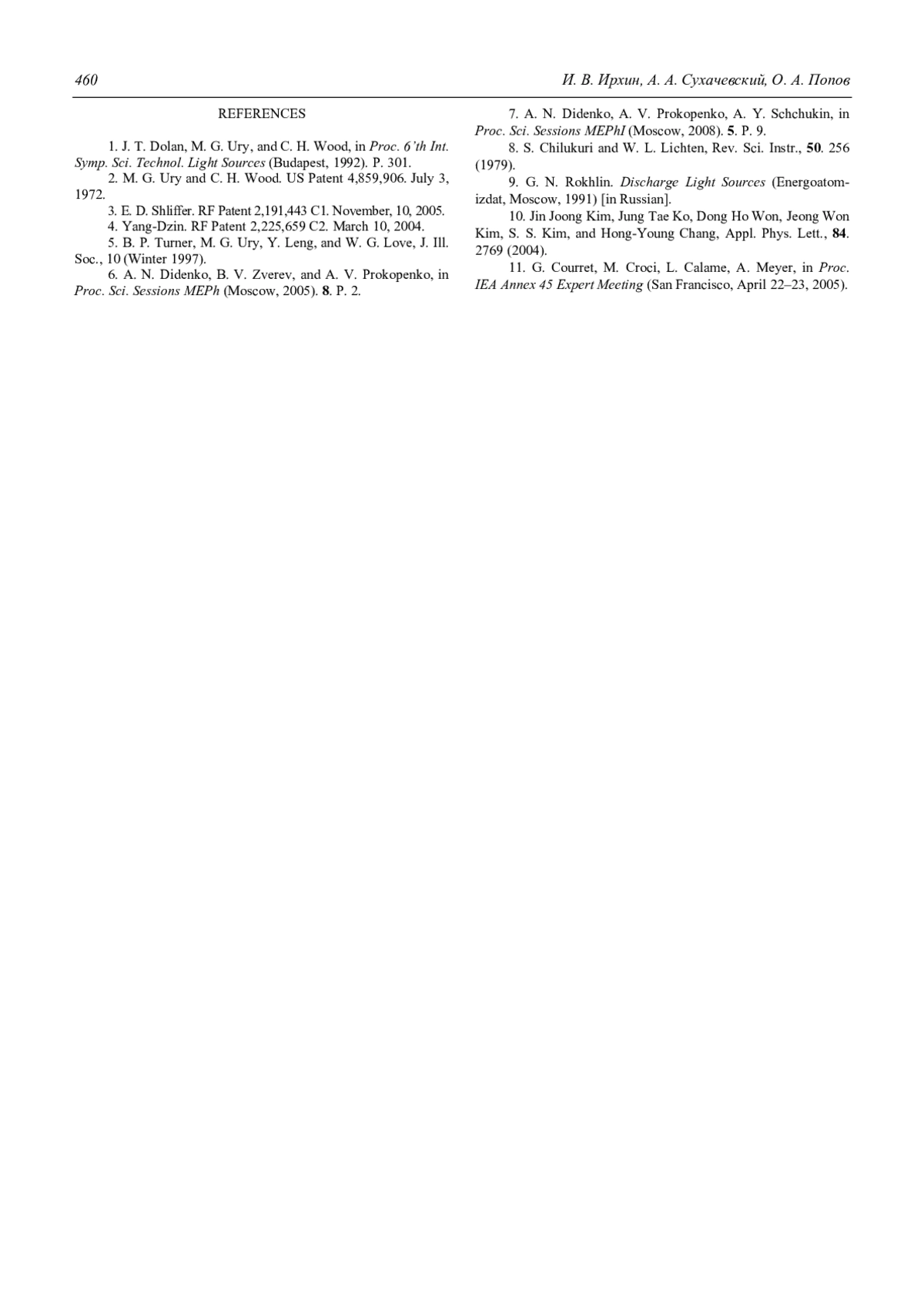 1. Dolan J. T., Ury M. G., Wood C. H. / Рroc. 6’th Int. Symp. Sci. Technol. Light Sources. Budapest. 1992. P. 301.