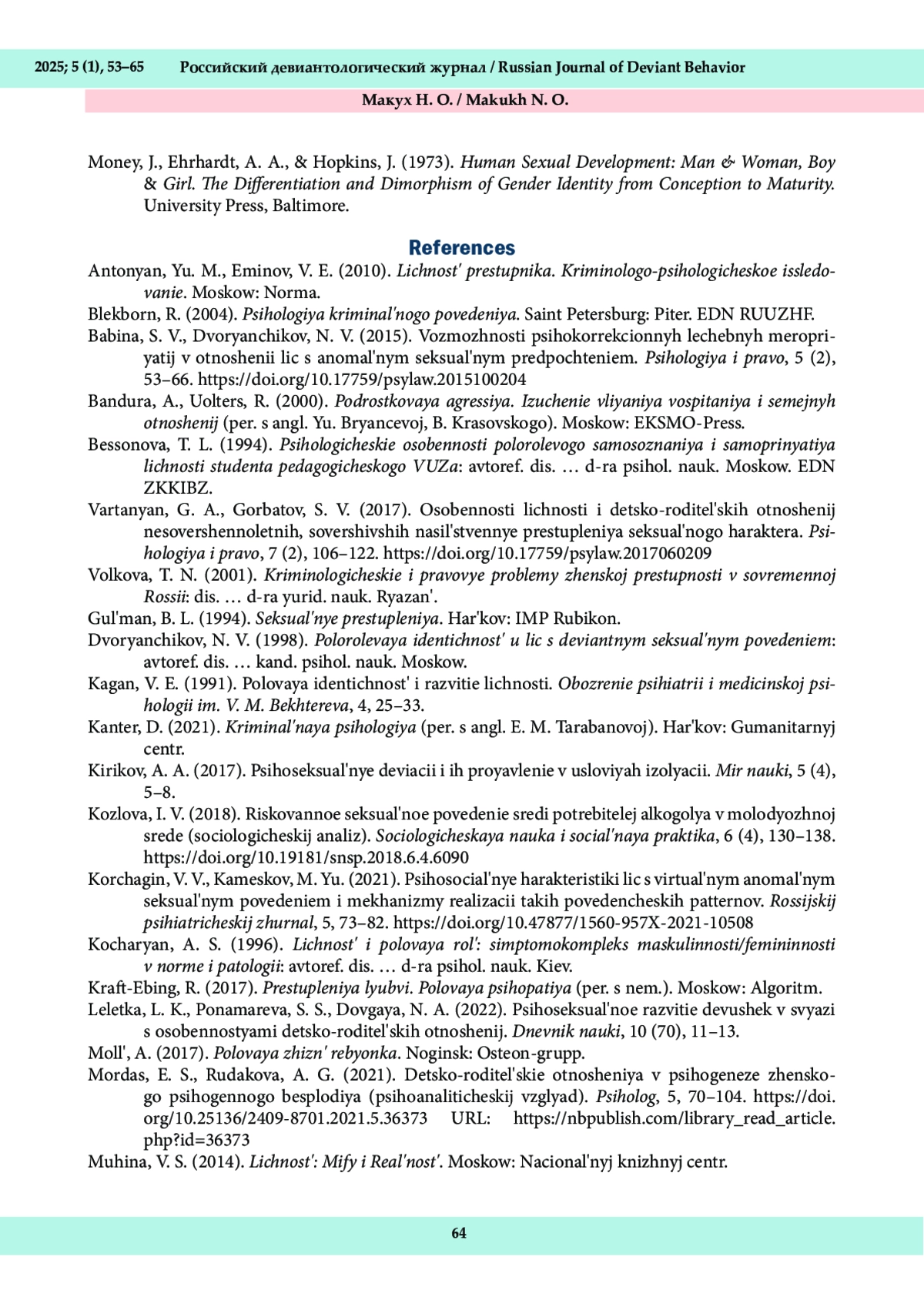 12. Кириков, А. А. (2017). Психосексуальные девиации и их проявление в условиях изоляции. Мир науки, 5 (4), 5-8.