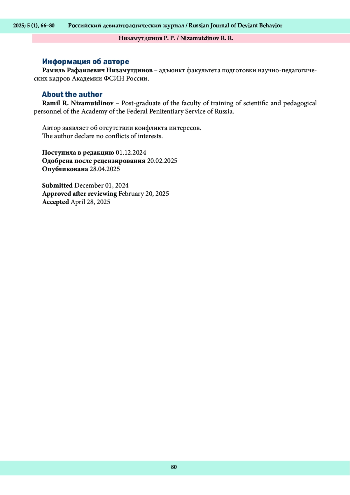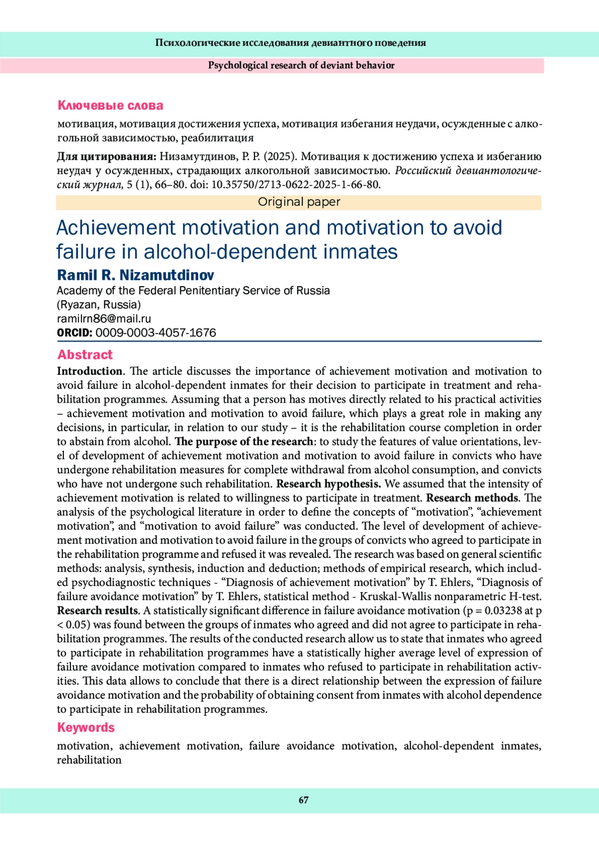 Данный номер открывает пятый год издания «Российского девиантологического журнала». За это время журнал включен в Перечень ВАК при Минобрнауки России, ему присвоена третья категория научной значимости (К3), индексация в Российском индексе научного цитирования демонстрирует стабильно высокие наукометрические показатели. Все это стало результатом эффективной работы редакционной коллегии, авторов, рецензентов, редакторов, а также читателей, которые проявляют интерес к материалам, изложенным в каждом номере.