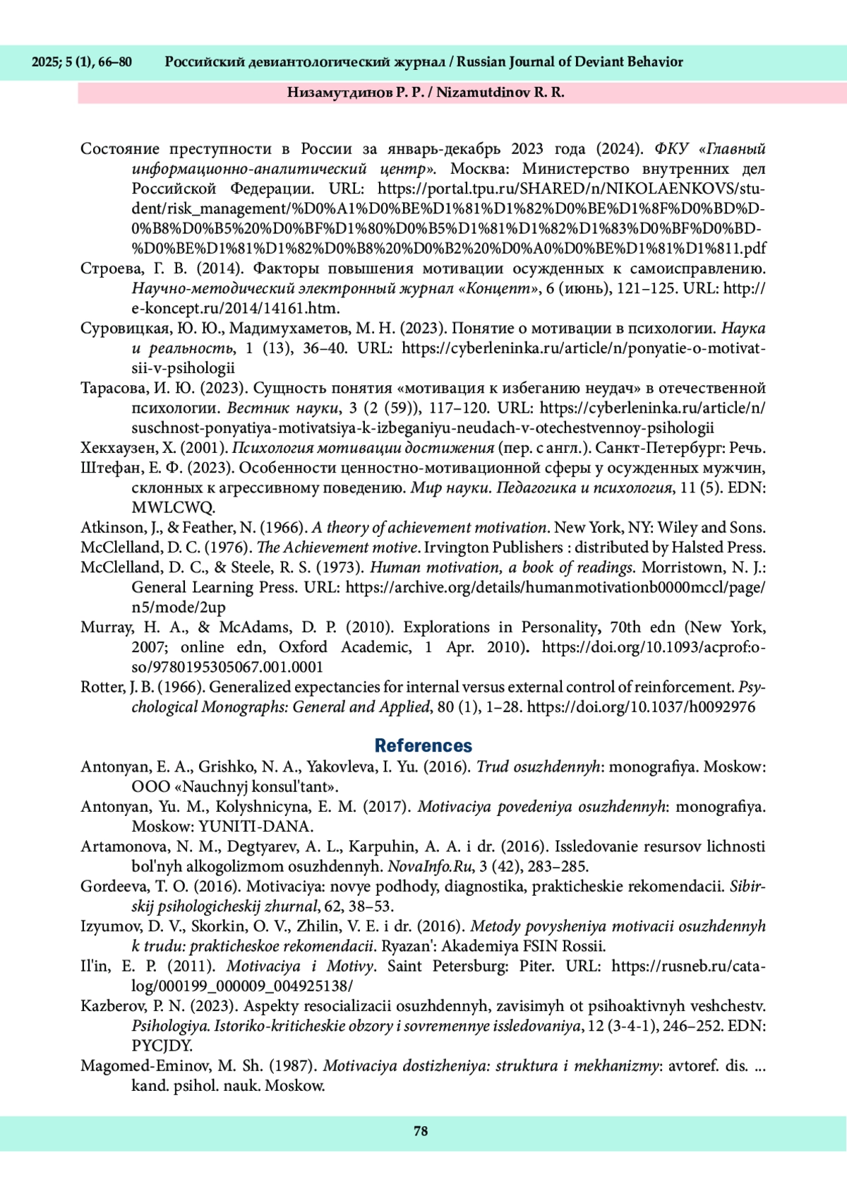 15. Суровицкая, Ю. Ю., Мадимухаметов, М. Н. (2023). Понятие о мотивации в психологии. Наука и реальность, 1 (13), 36-40. URL: https://cyberleninka.ru/article/n/ponyatie-o-motivat-sii-v-psihologii.