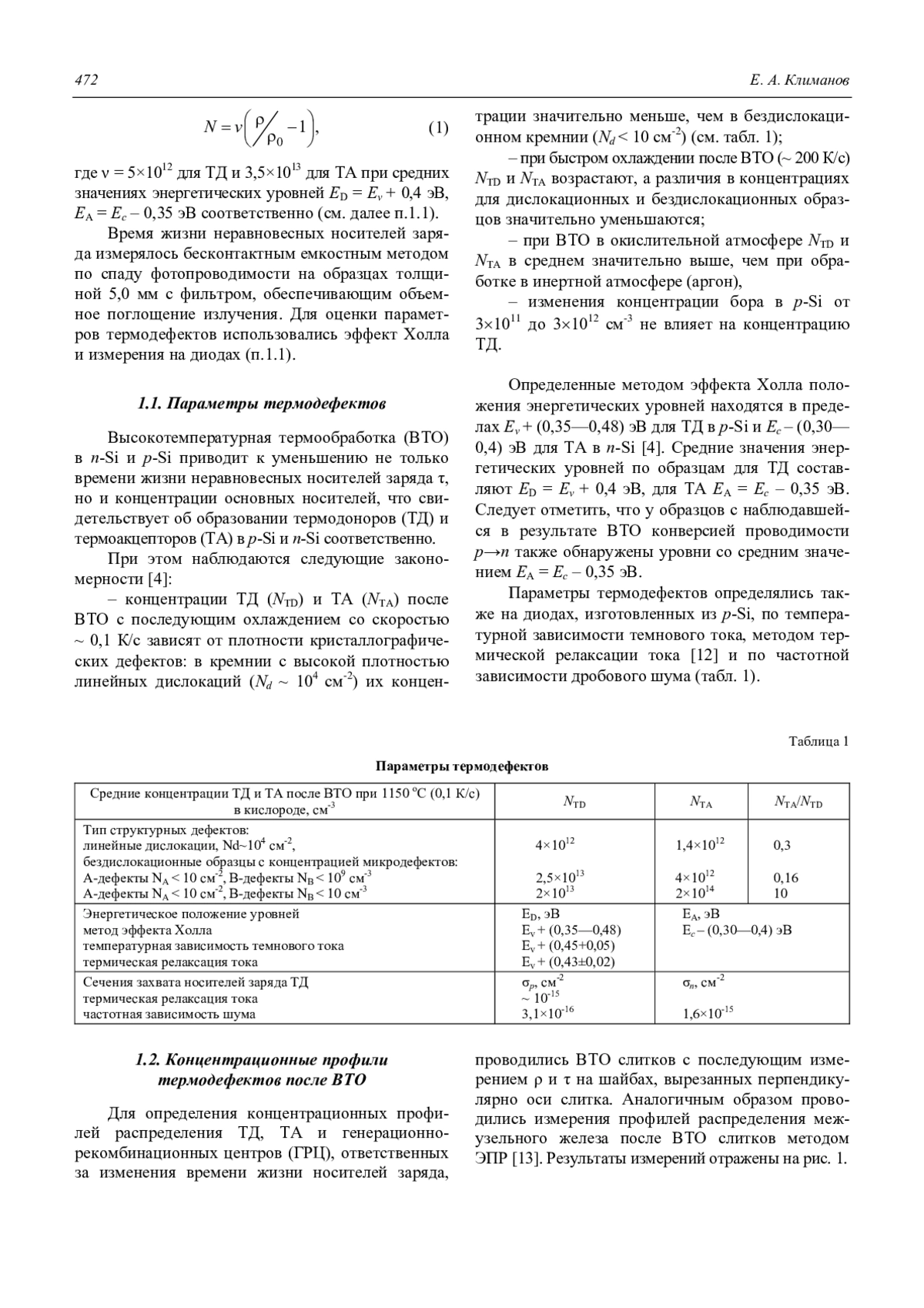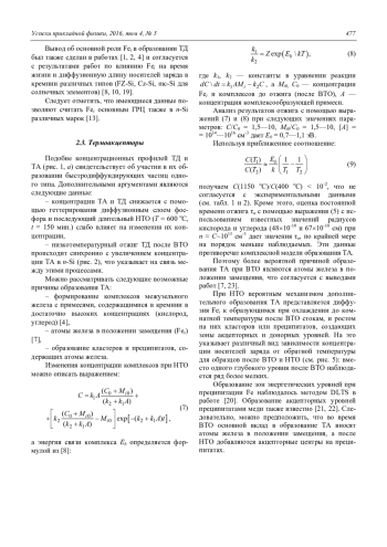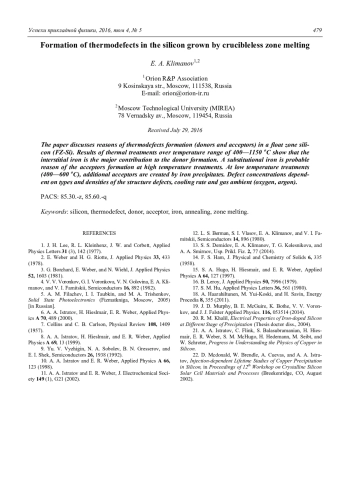 Е. А. Klimanov Formation of thermodefects in the silicon grown by crucibleless zone melting 471