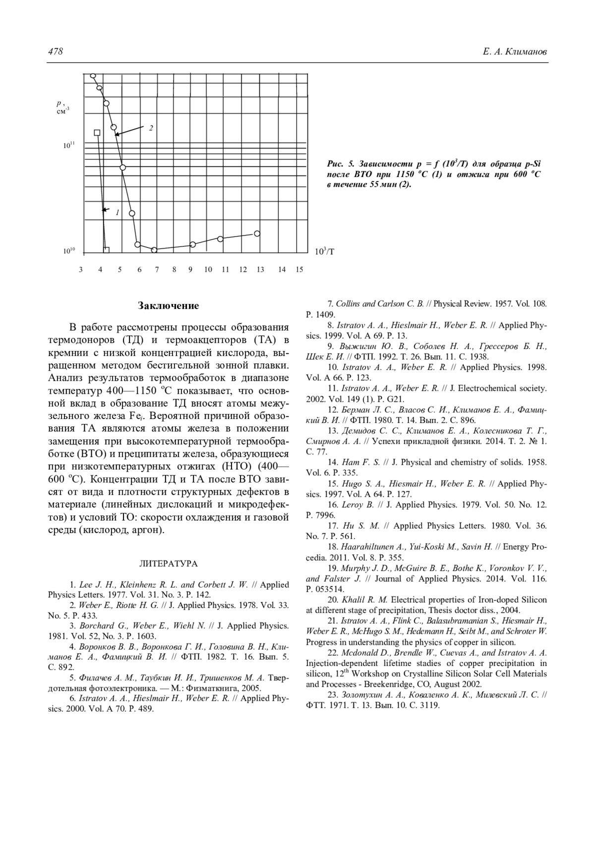 10. Istratov A. A., Weber E. R. // Applied Physics. 1998. Vol. A 66. P. 123.