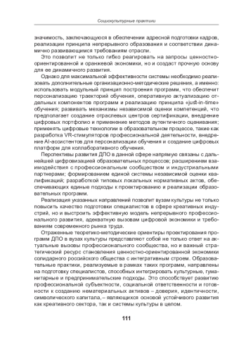 Креативные индустрии сегодня занимают ключевое место в развитии ценностно‑ ориентированной экономики России, синтезируя искусство, инновационные технологии и предпринимательство. В условиях стремительных изменений профессионального сообщества возникает необходимость постоянного совершенствования компетенций, освоения новых междисциплинарных методов и повышения адаптивности специалистов.