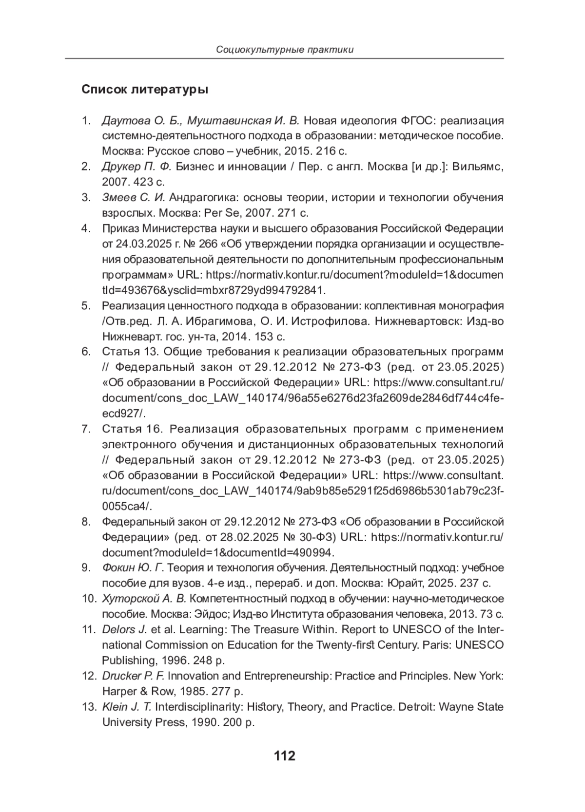 8. Федеральный закон от 29.12.2012 № 273-ФЗ “Об образовании в Российской Федерации” (ред. от 28.02.2025 № 30-ФЗ)URL:https://normativ.kontur.ru/document?moduleId=1&documentId=490994.