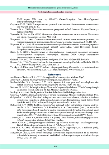 20. Ситников, В. Л. (2024). Об актуальности исследования социально-перцептивных образов сотрудников полиции. В Актуальные проблемы психологии правоохранительной деятельности: концепции и технологии решения (Васильевские чтения - 2024): материалы международной научно-практической конференции (Санкт-Петербург, 26-27 апреля 2024 года, стр. 692-697). Санкт-Петербург: Санкт-Петербургский университет МВД России.