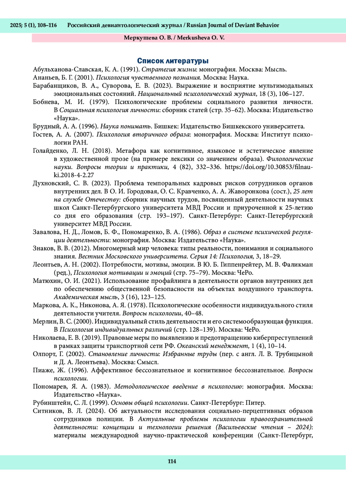 1. Абульханова-Славская, К. А. (1991). Стратегия жизни: монография. Москва: Мысль.