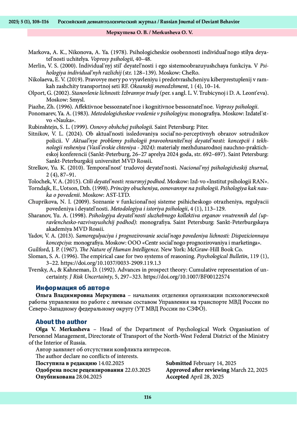 Данный номер открывает пятый год издания «Российского девиантологического журнала». За это время журнал включен в Перечень ВАК при Минобрнауки России, ему присвоена третья категория научной значимости (К3), индексация в Российском индексе научного цитирования демонстрирует стабильно высокие наукометрические показатели. Все это стало результатом эффективной работы редакционной коллегии, авторов, рецензентов, редакторов, а также читателей, которые проявляют интерес к материалам, изложенным в каждом номере.
