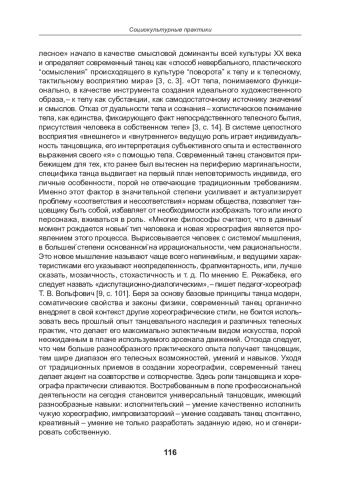 3. Курюмова Н. В. Современный танец в культуре XX века: смена моделей телесности: автореф. дисс. канд. культурологии. Уральский государственный университет им. А. М. Горького. Екатеринбург, 2011. 176 с. EDN: ZOHNPZ