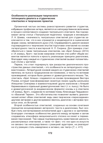 6. Лаврик М. В. Воспитание художественной выразительности на основе системы К. С. Станиславского // Вестник Московского государственного университета культуры и искусств. 2022 № 3 (107). С. 93-100. EDN: KNHVGJ