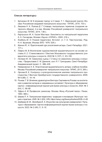 12. Шаева Л. А. Театральная педагогика: традиции и инновации //Культура: теория и практика. 2025. № 2 (63).URLhttps://sciup.org/theoryofculture/2025-2-63. EDN: SHTUZN