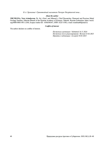 9. Layer P.W., Newberry R., Fujita K., et al. Tectonic setting of the plutonic belts of Yakutia, northeast Russia, based on 40Ar/39Ar geochronology and trace element geochemistry. Geology. 2001;29(2):167-17.